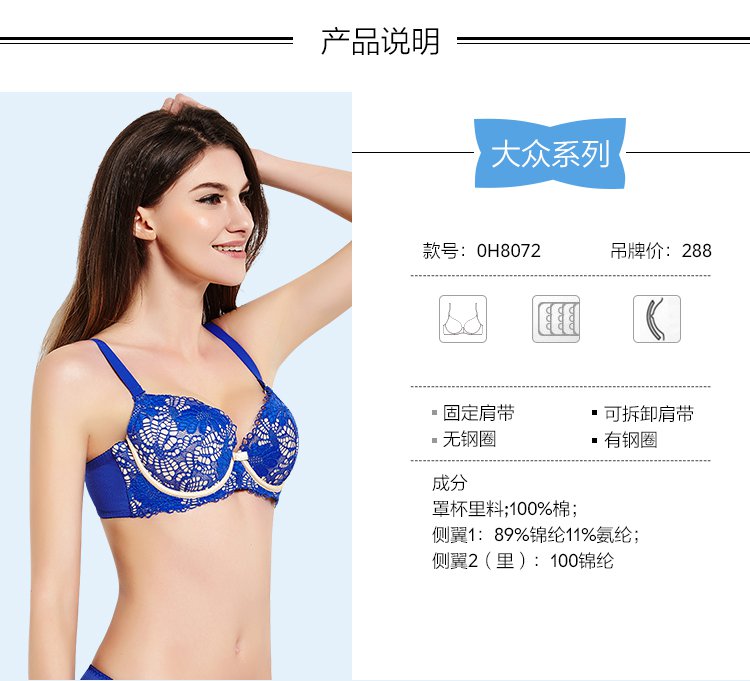 商品名称:【捡漏款】性感华丽水溶蕾丝花朵大胸聚拢文胸胸罩内衣女 912971