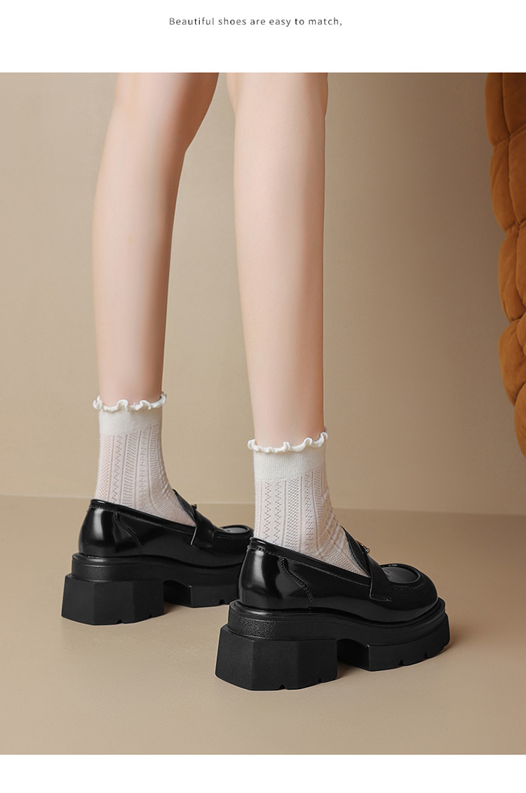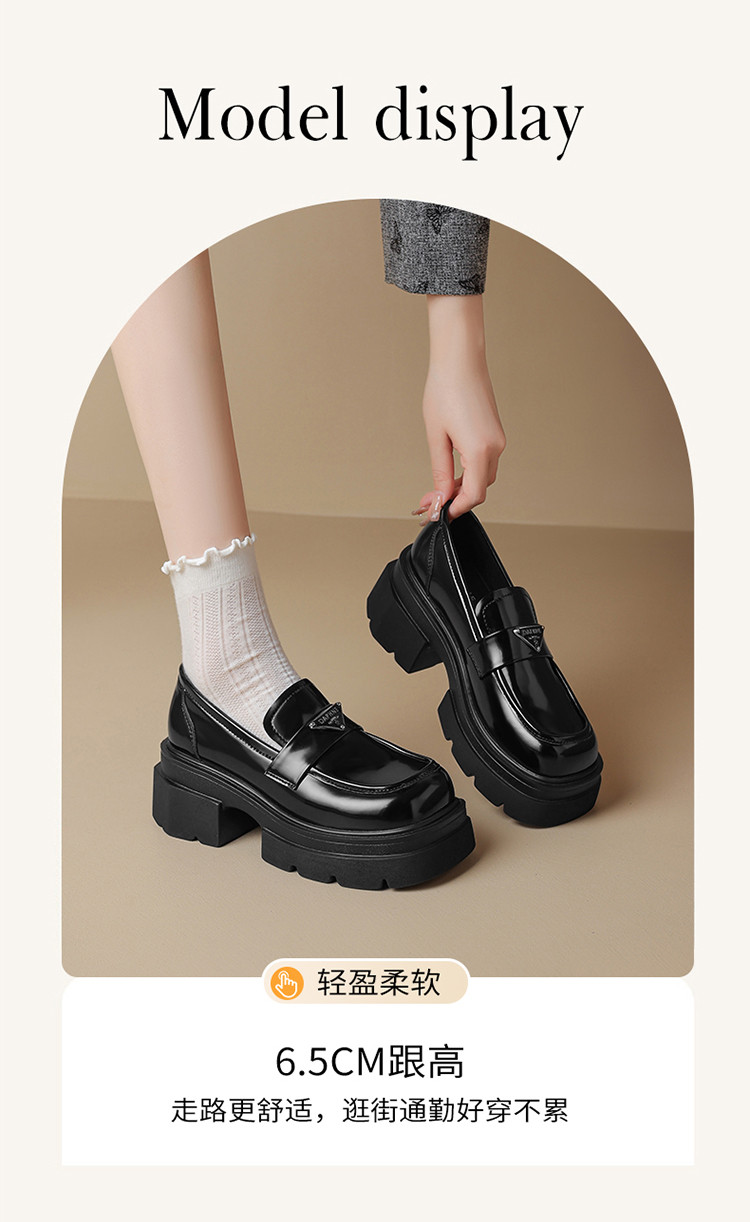 商品名称:乐福鞋女夏季学院风JK制服鞋一脚蹬百搭通勤鞋厚底鞋粗跟单鞋 046103