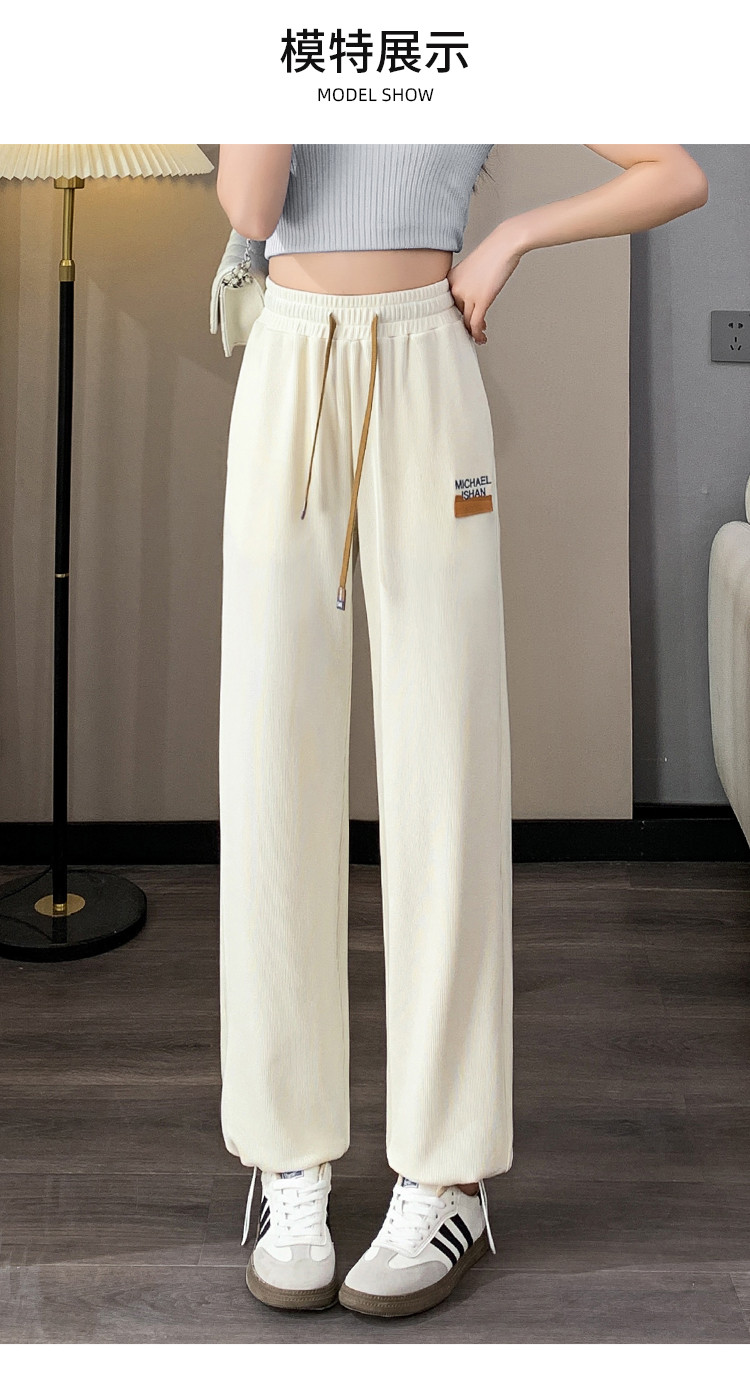 商品名称:窄版阔腿裤女春季时尚系带小个子显瘦直筒休闲女长裤子 040344