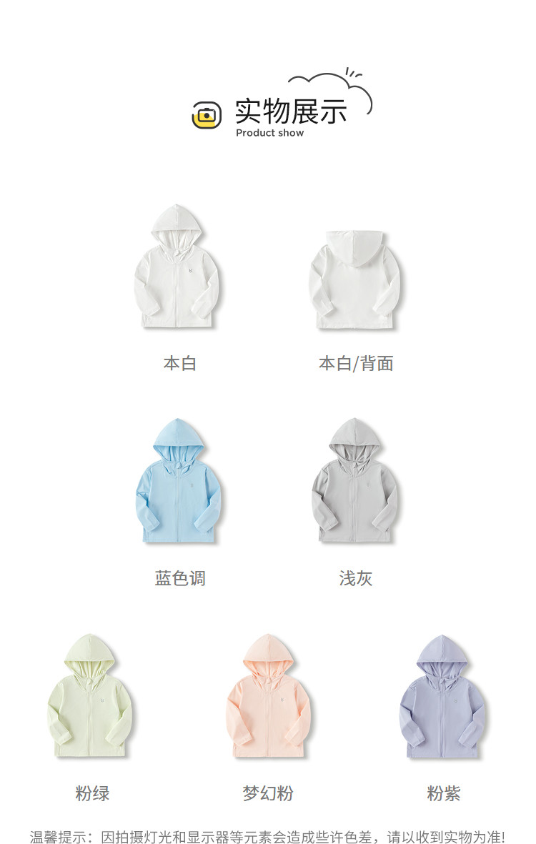 商品名称:巴拉巴拉儿童外套男童装夏装女童抗UV防晒衣百搭连帽时尚便携 189381