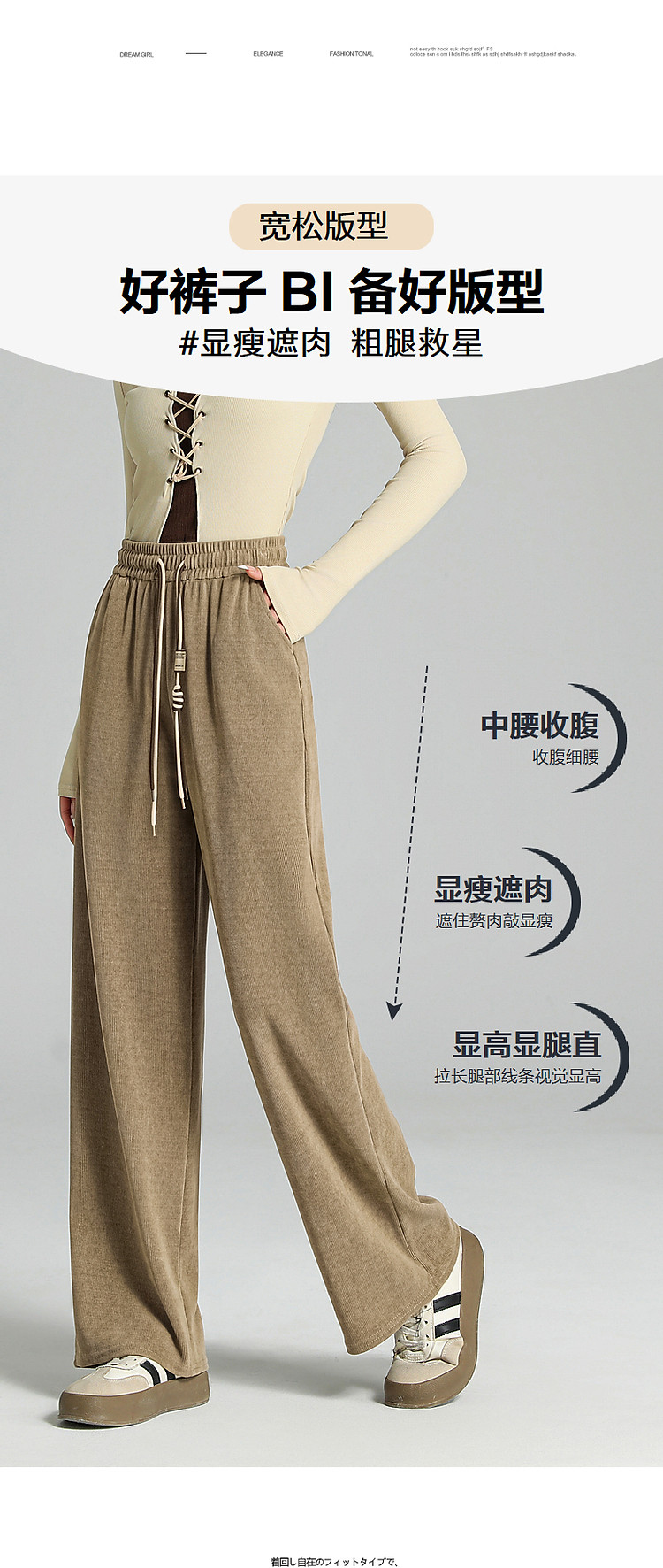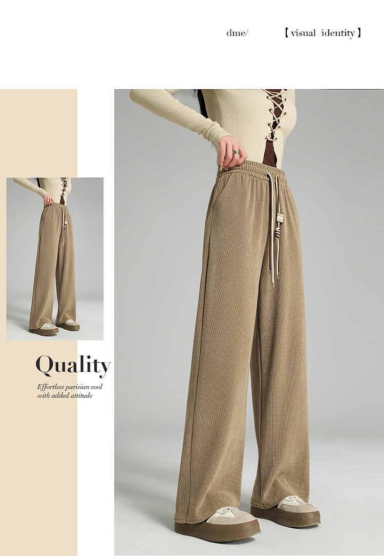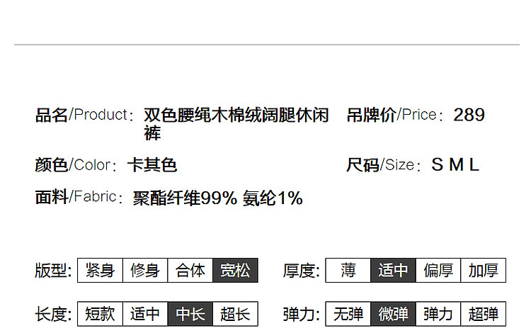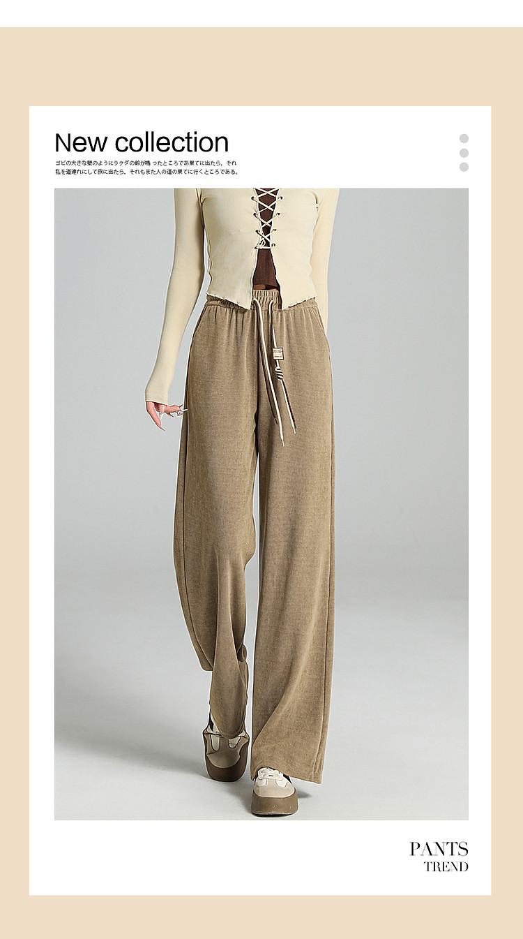 商品名称:【木棉绒阔腿休闲裤】春秋季中腰松紧长裤宽松女裤子女 093761