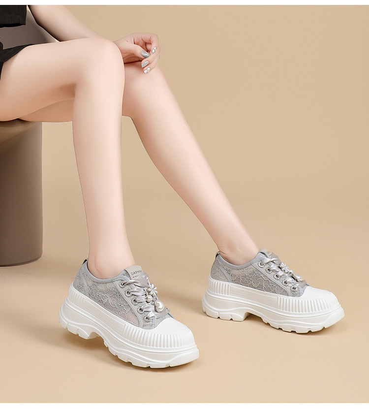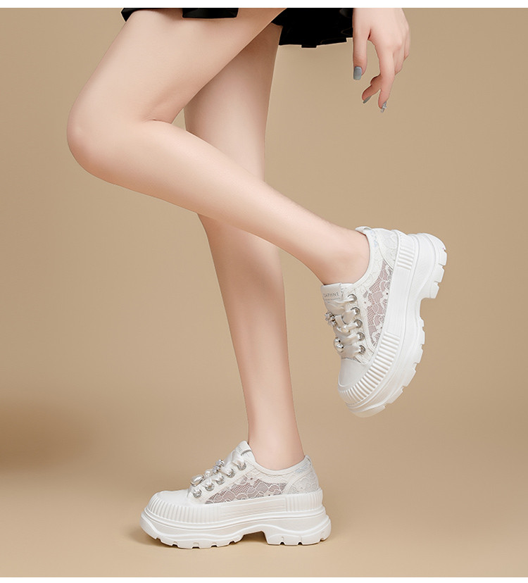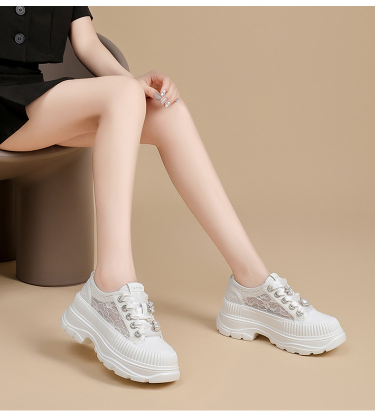 夏季简约风小白鞋女透气薄款网面厚底鞋轻便百搭运动休闲鞋增高鞋 132695