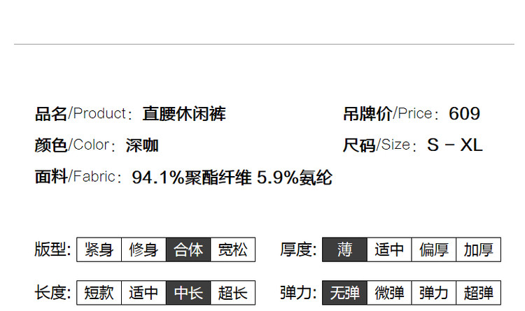 商品名称:【压线九分裤】秋季通勤中腰女裤子女直筒休闲裤 514113