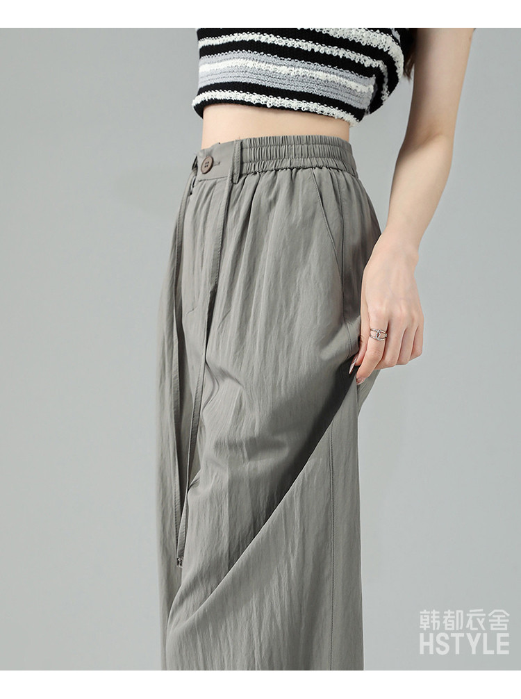 松紧腰春季舒适长裤垂感时尚百搭薄款裤子设计感女式休闲裤 936651