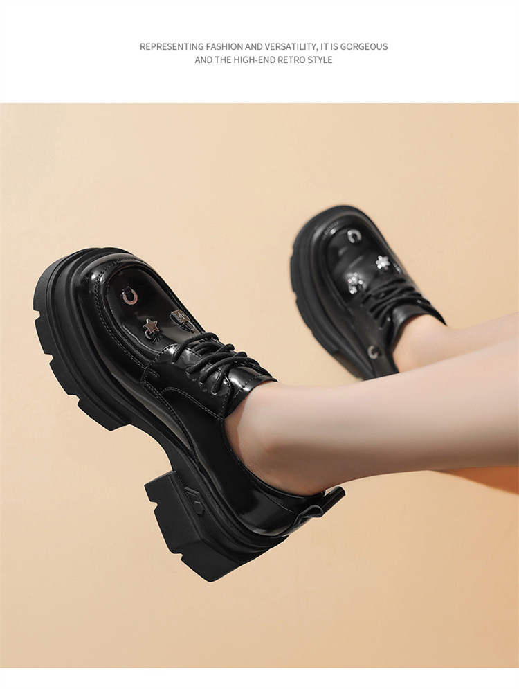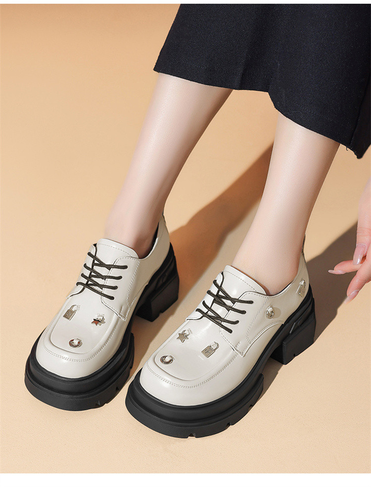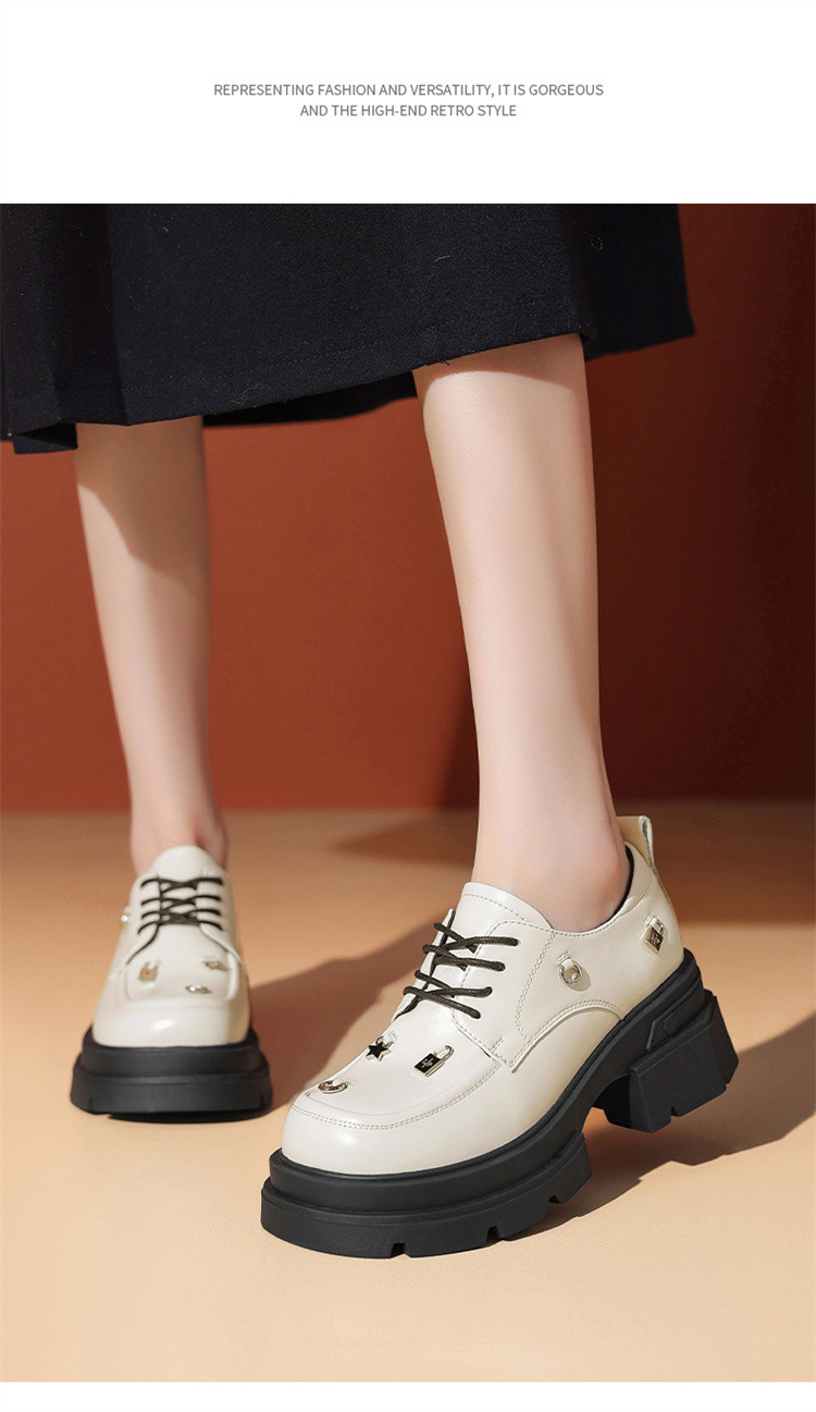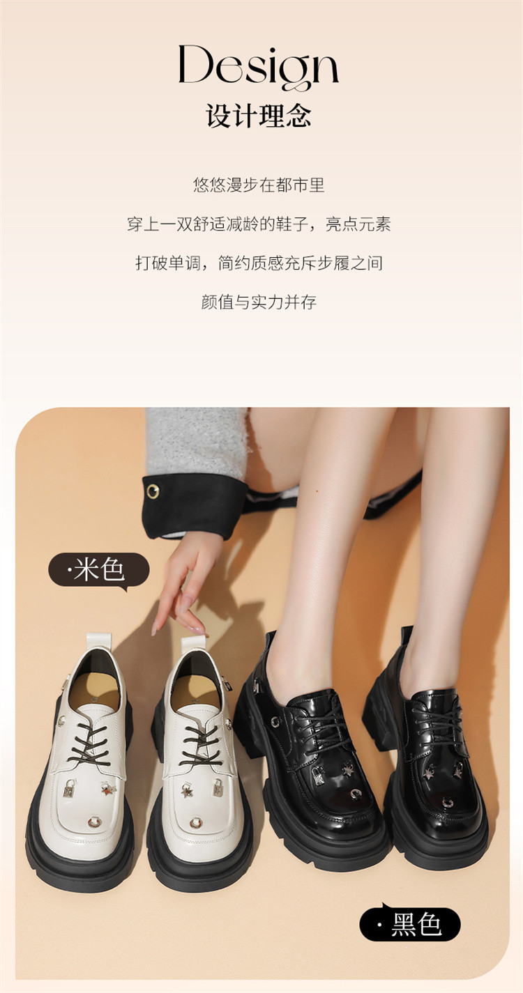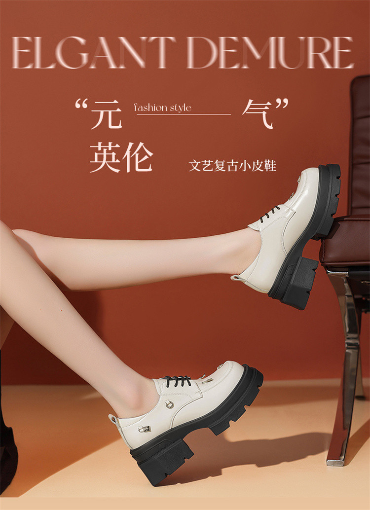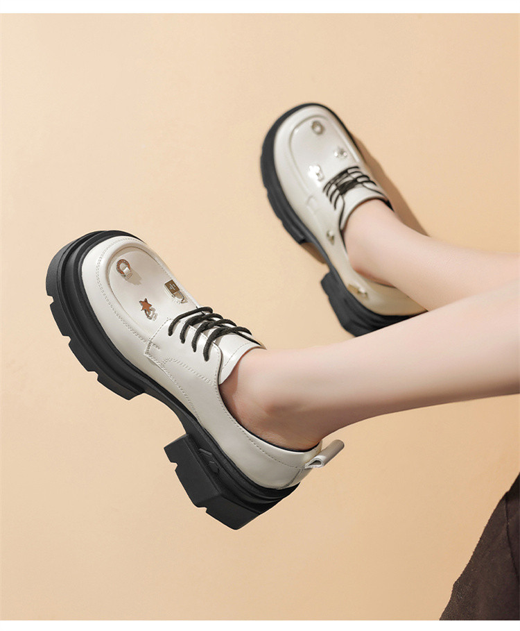 商品名称:夏季厚底乐福鞋女时尚系带牛津鞋通勤鞋粗跟松糕底女单鞋JK鞋 932631