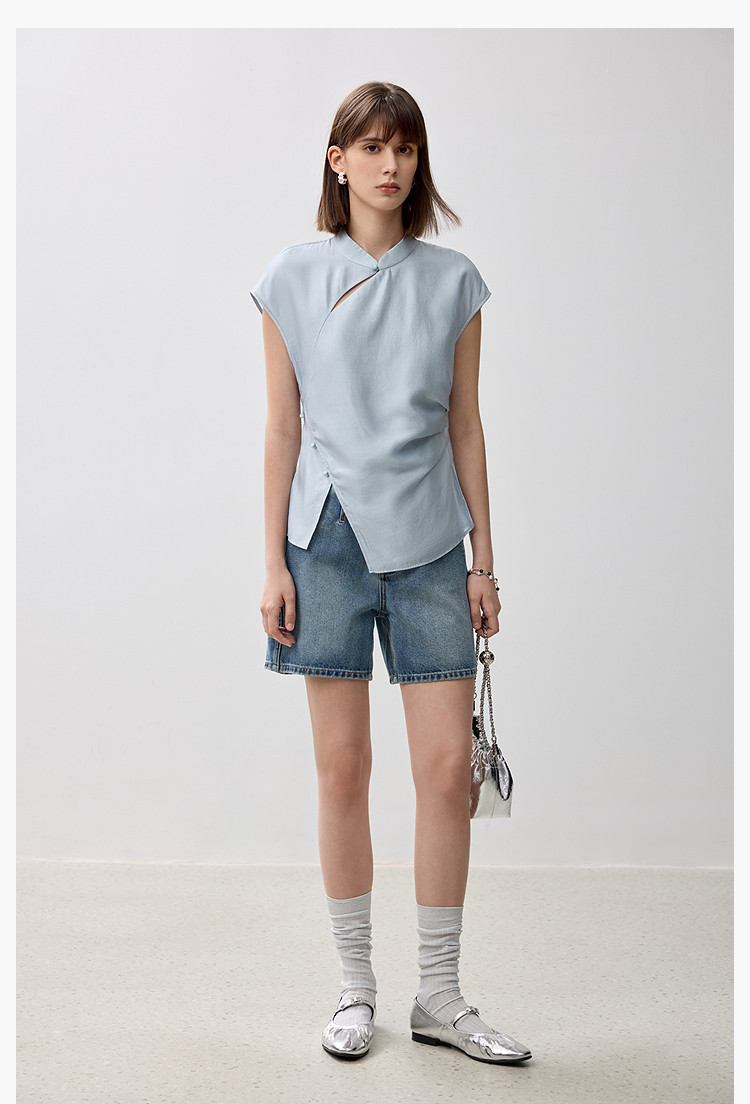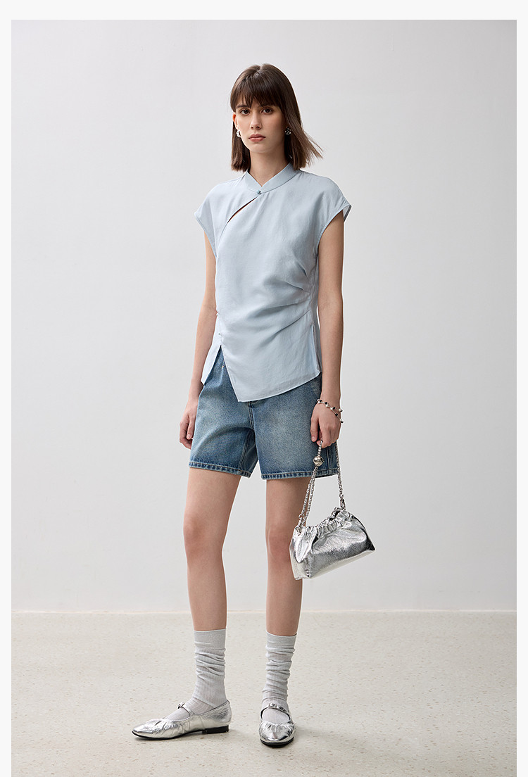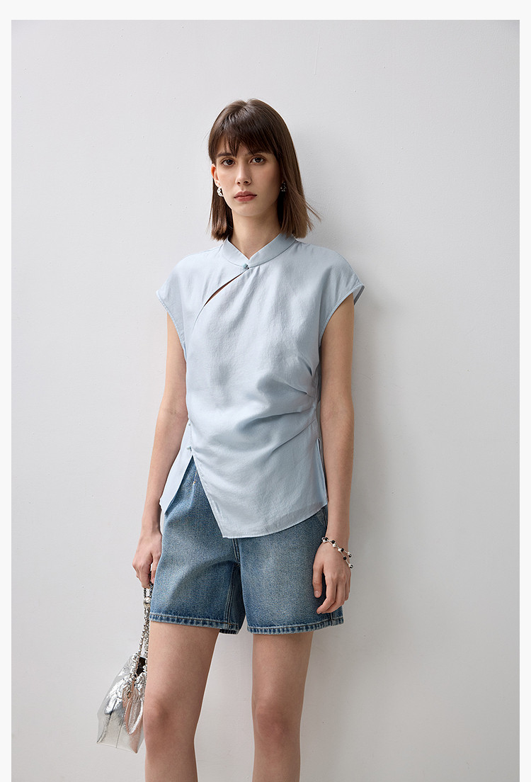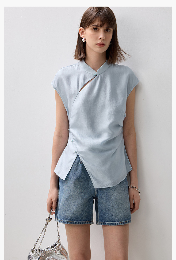 春季国风上衣新中式时尚优雅莫代尔设计感别致显瘦衬衫女 958235