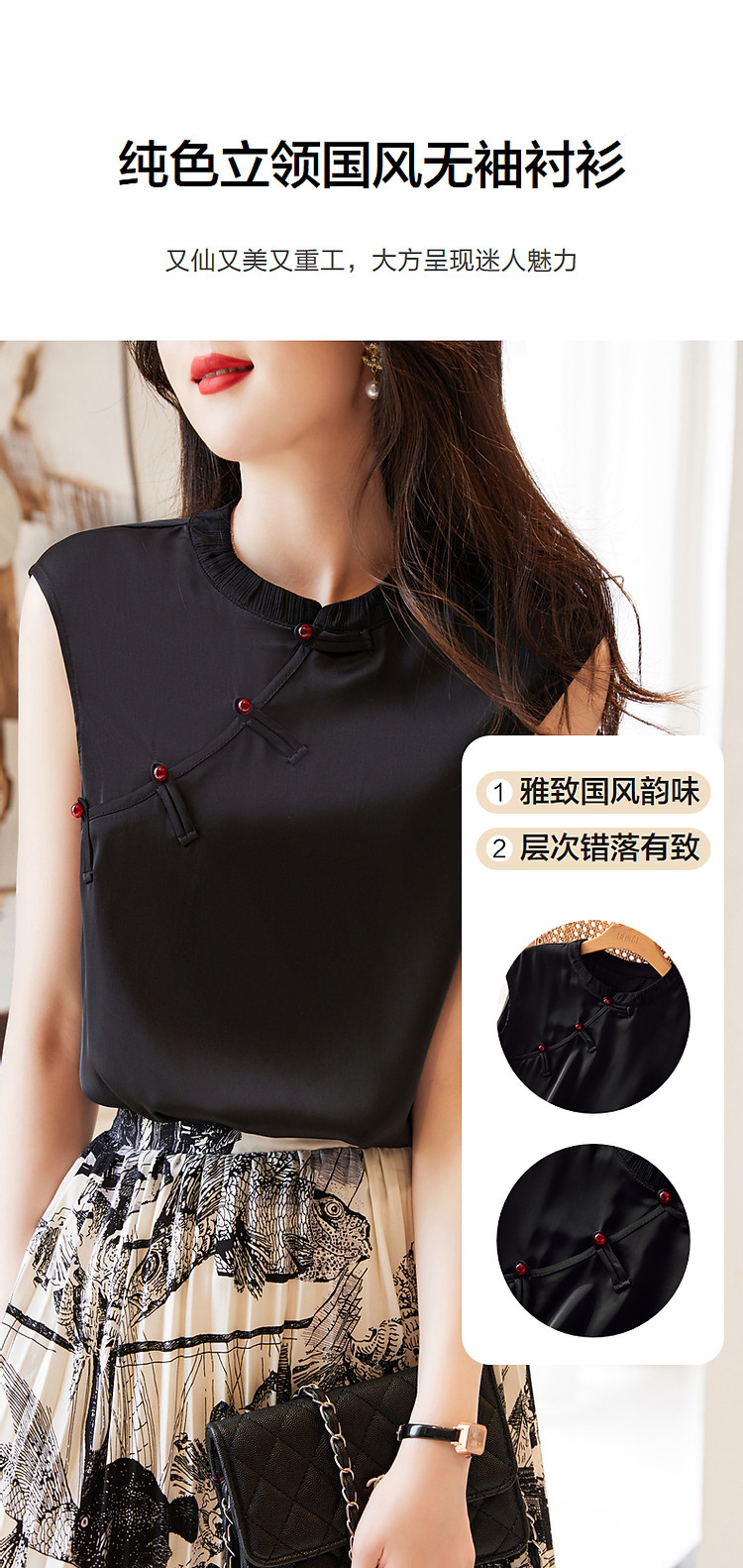 商品名称:【椿山晓月】夏国风新中式温婉衬衫复古红珠装饰盘扣衬衣女装上衣 622849