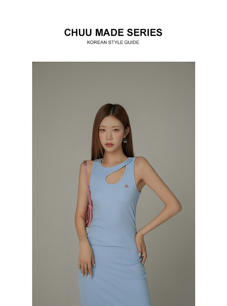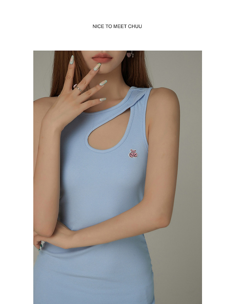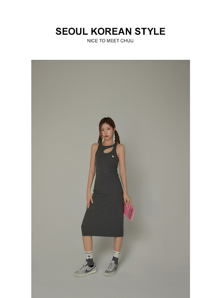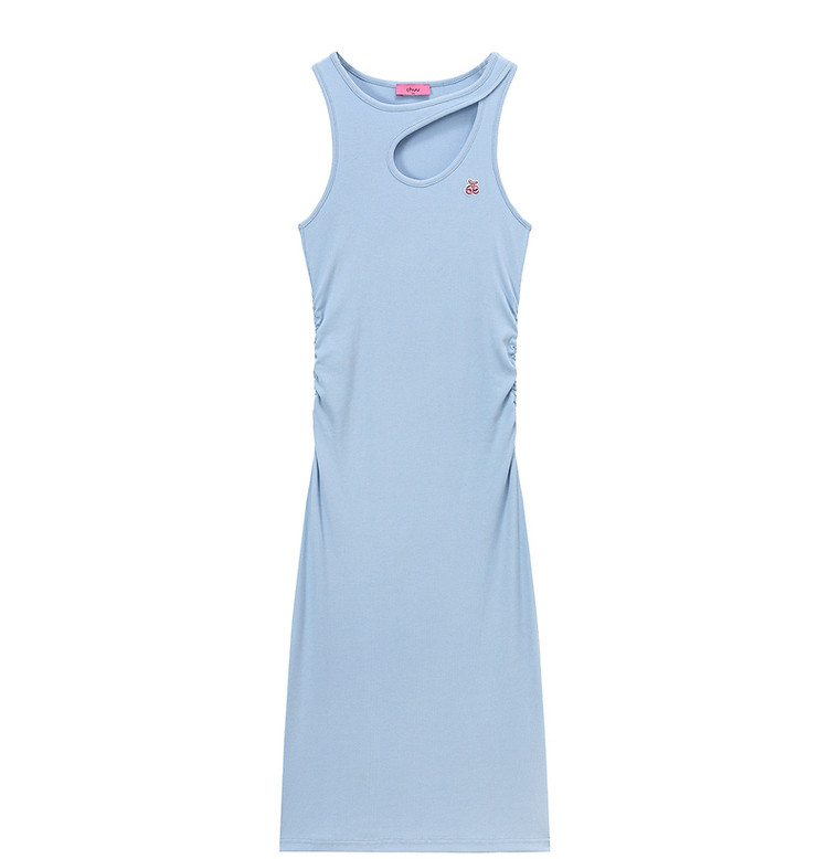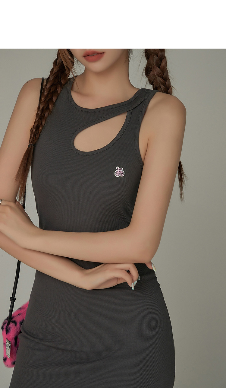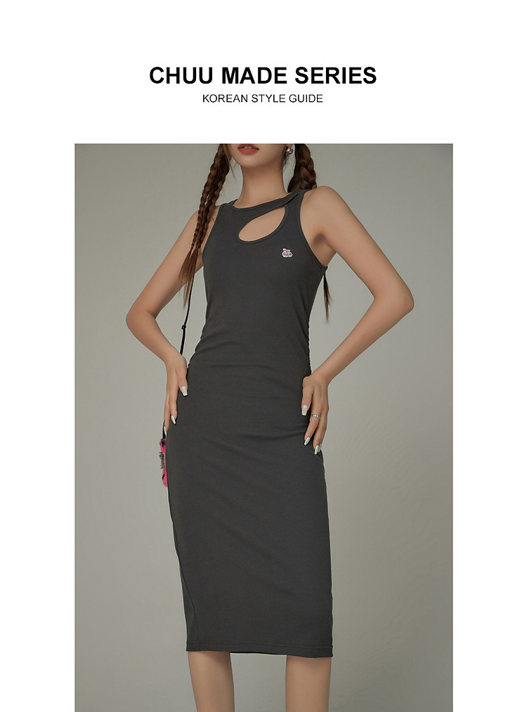 CHUU镂空褶皱无袖连衣裙女春秋樱桃贴布绣中长裙子 240595