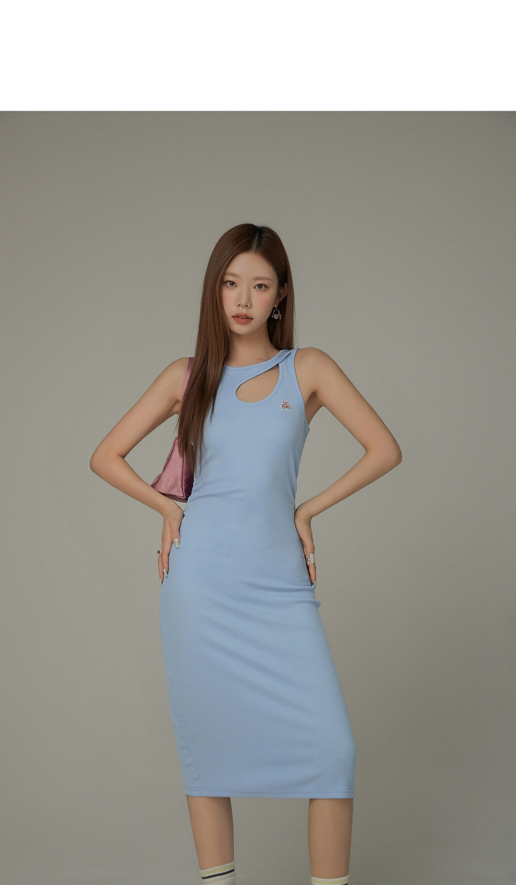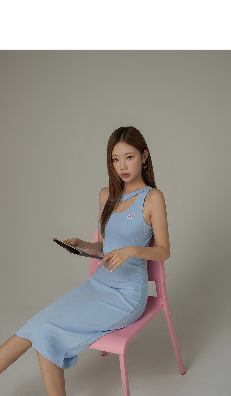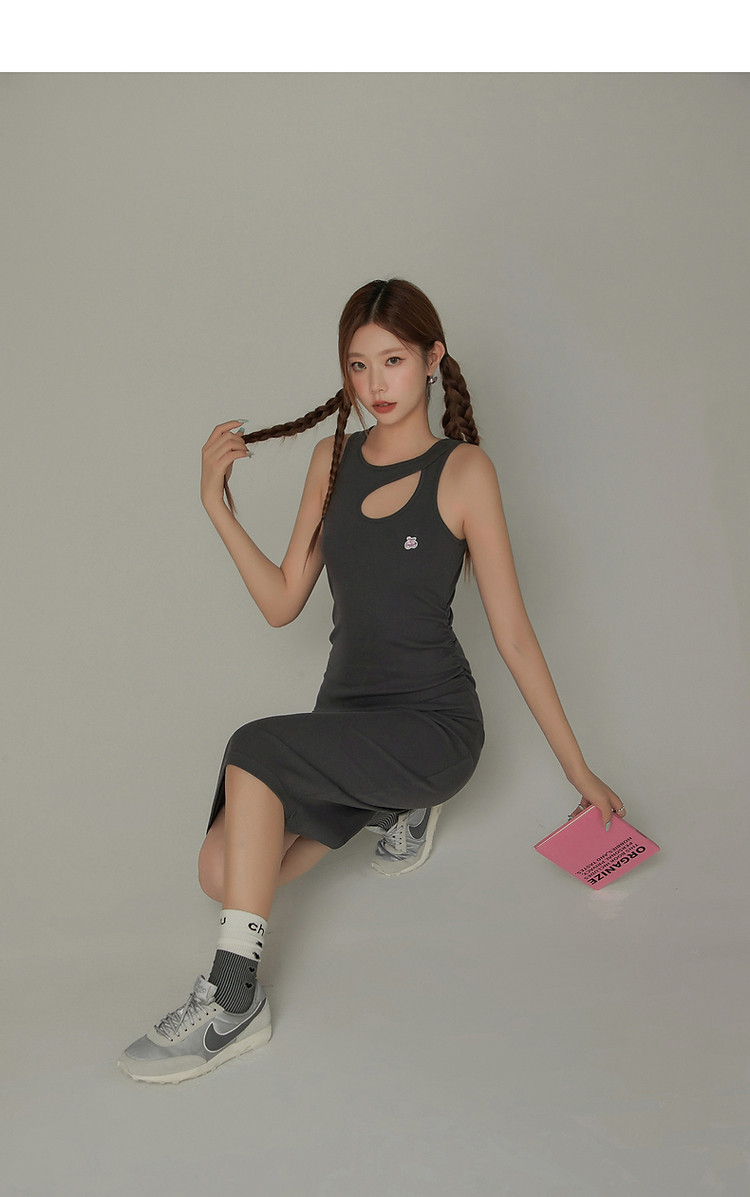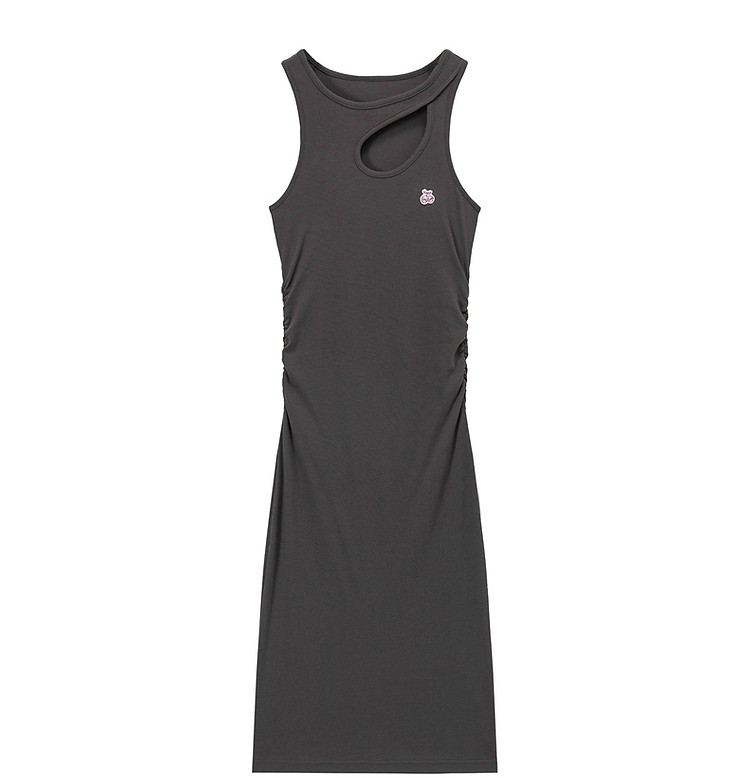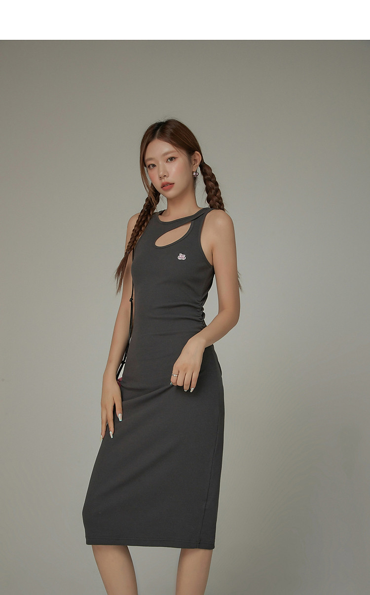 CHUU镂空褶皱无袖连衣裙女春秋樱桃贴布绣中长裙子 240595