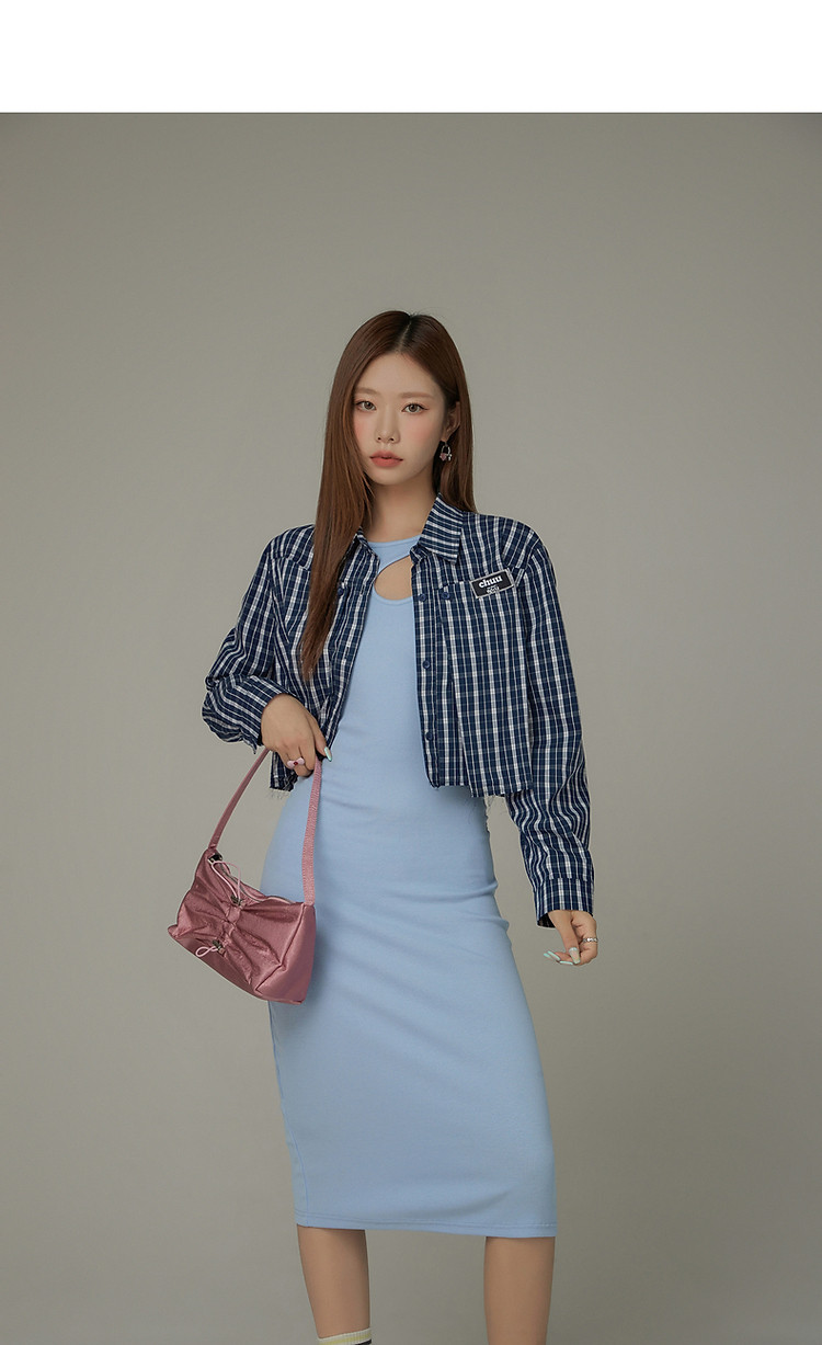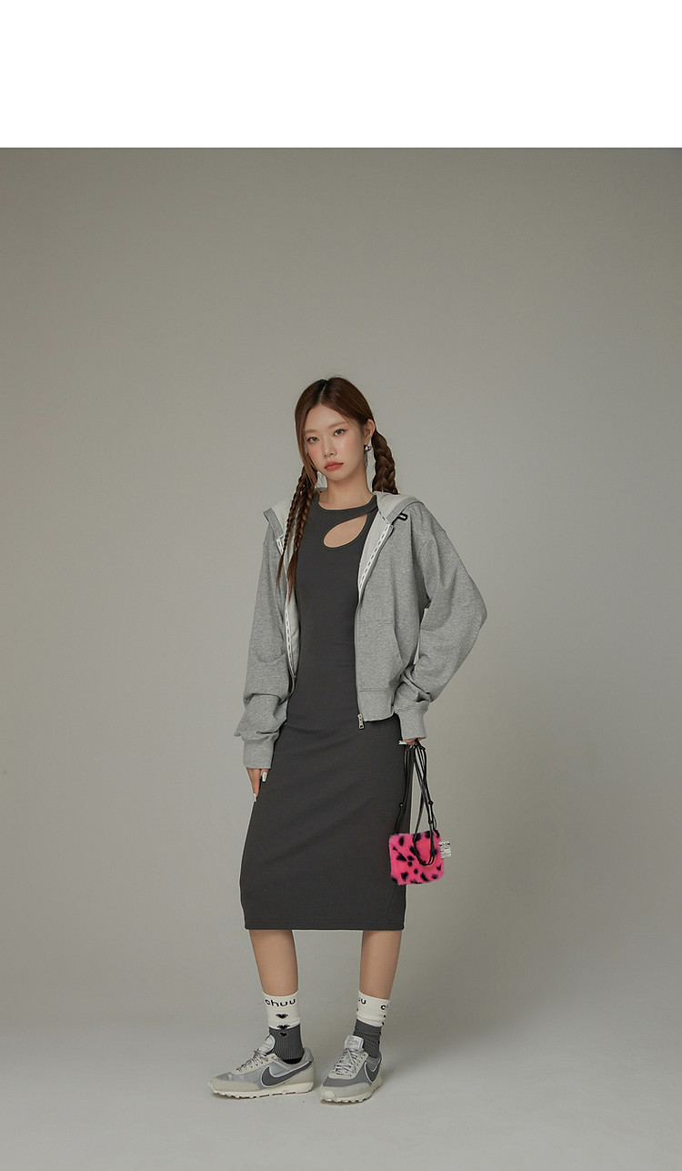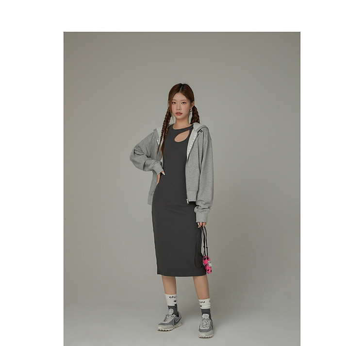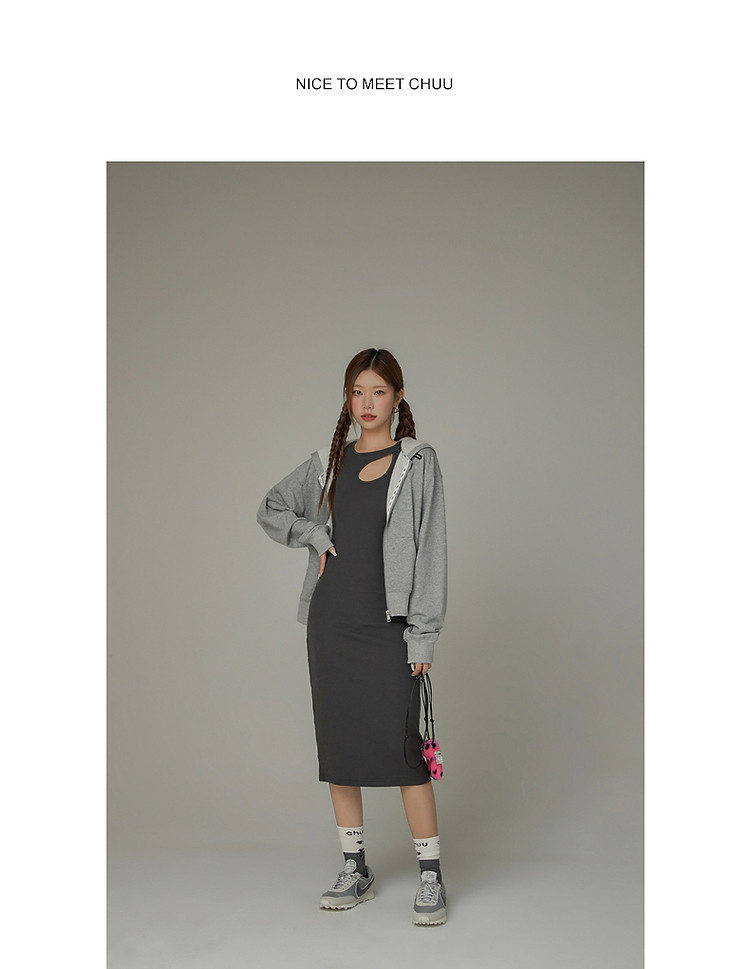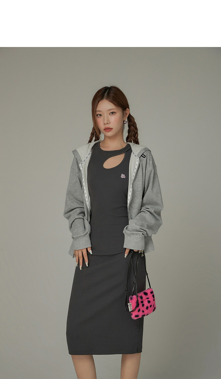 CHUU镂空褶皱无袖连衣裙女春秋樱桃贴布绣中长裙子 240595