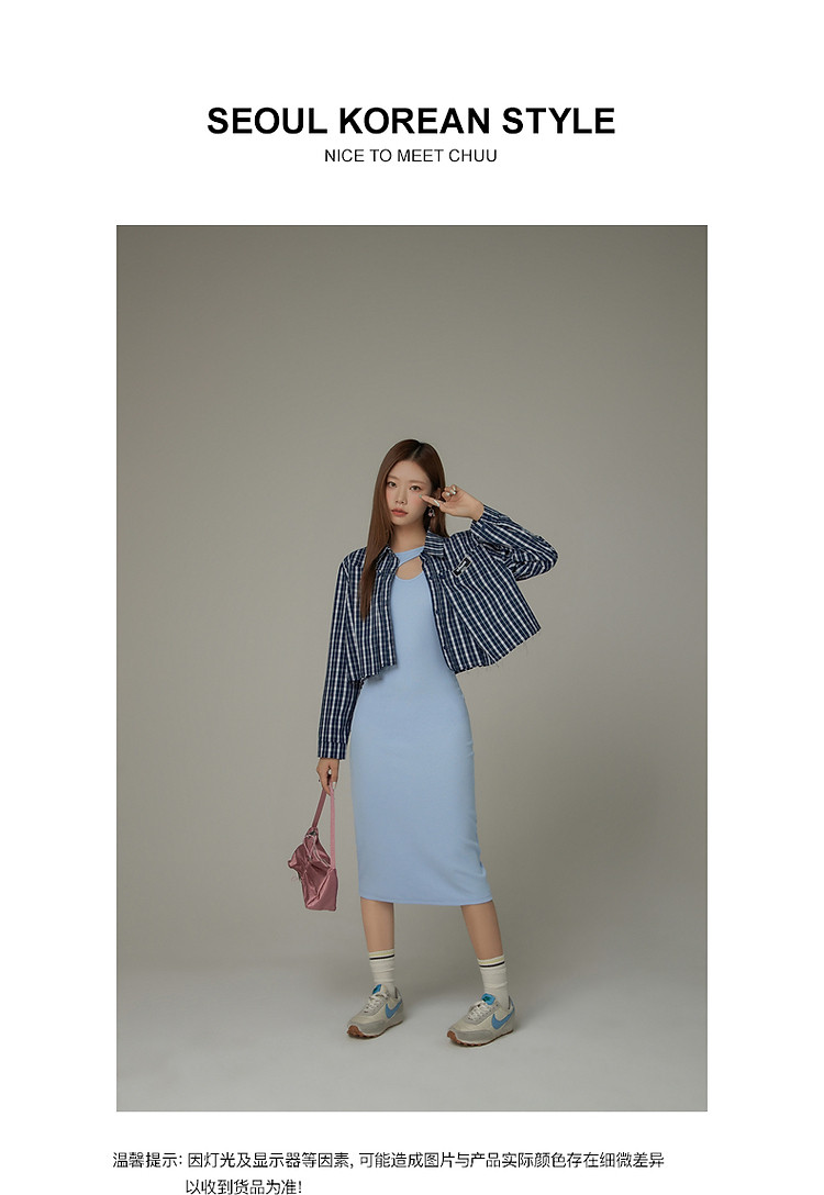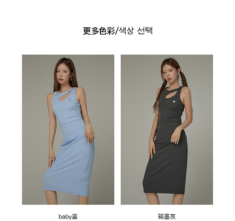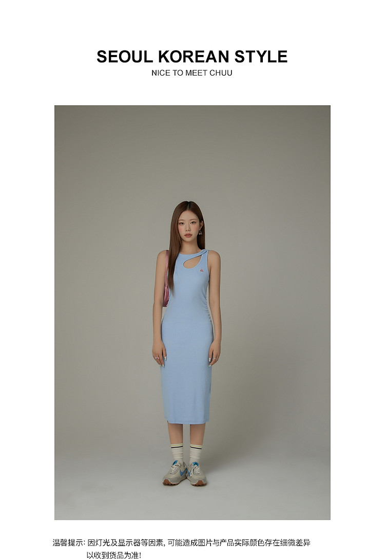 商品名称:CHUU镂空褶皱无袖连衣裙女春秋樱桃贴布绣中长裙子 240595