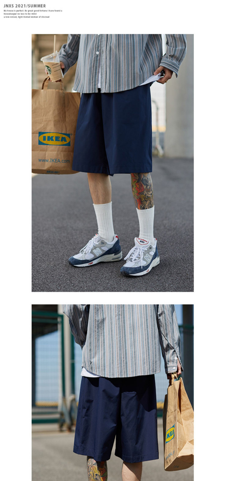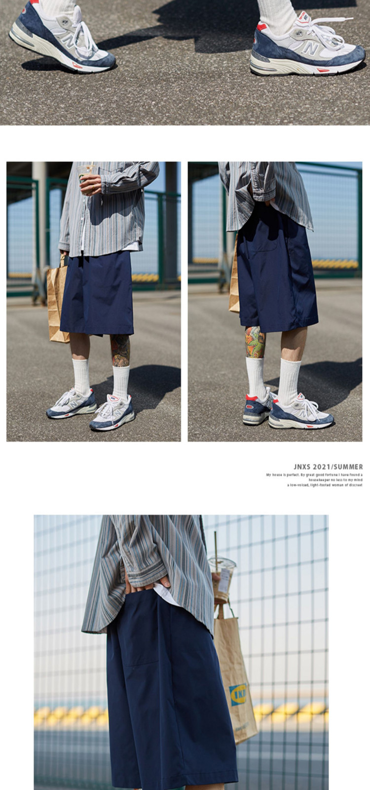 商品名称:JNXS江南先生日系风格宽松休闲短裤男夏季潮牌百搭直筒工装裤 011793