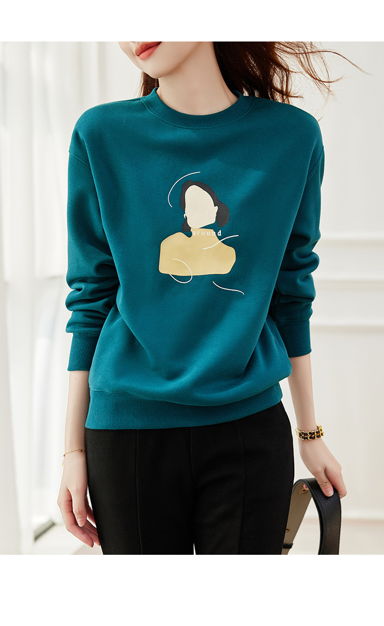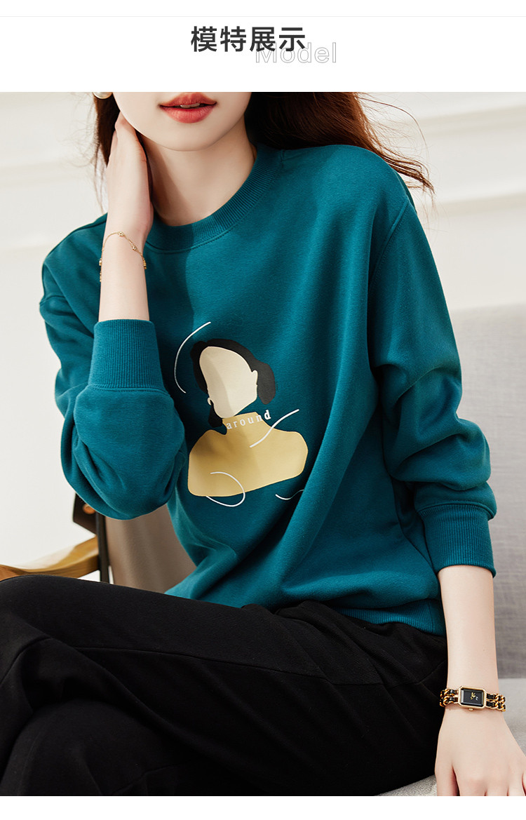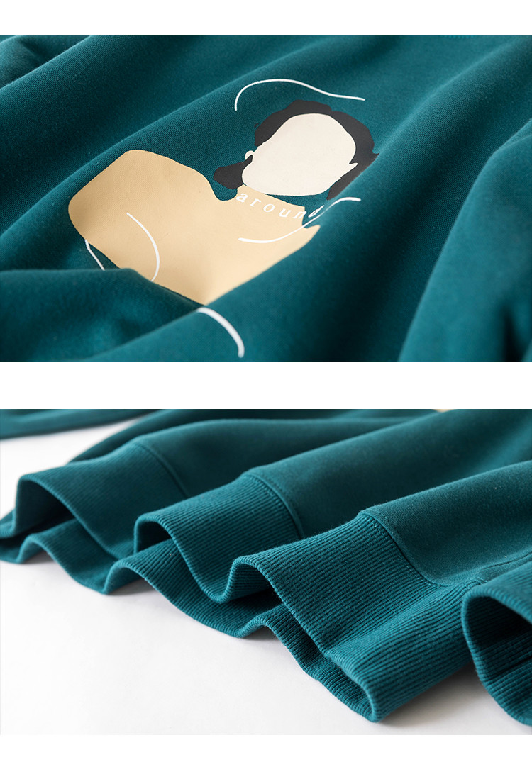 【抽象女孩印花卫衣】秋季H型宽松毛圈罗纹卫衣女加绒 546305