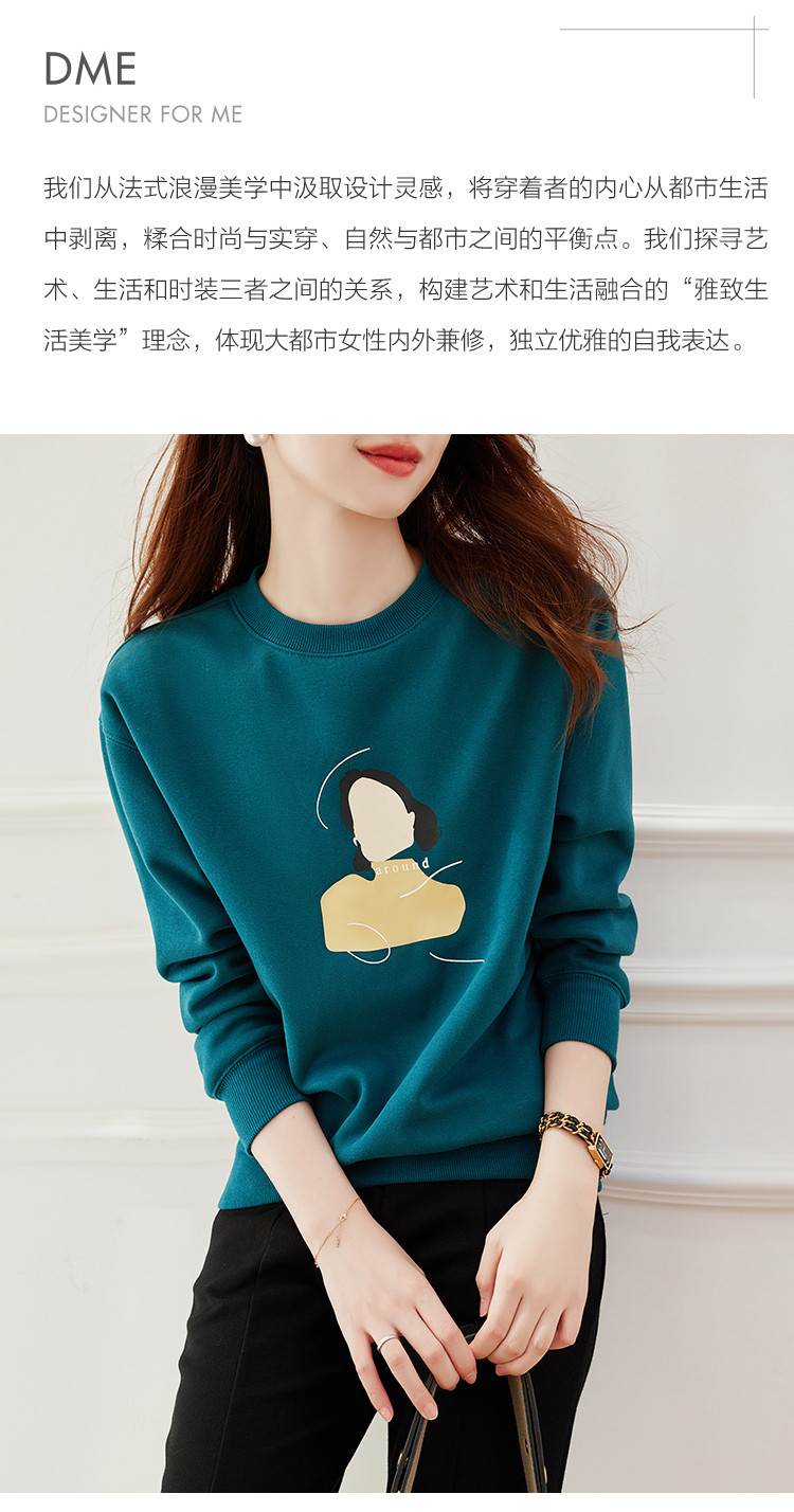 商品名称:【抽象女孩印花卫衣】秋季H型宽松毛圈罗纹卫衣女加绒 546305