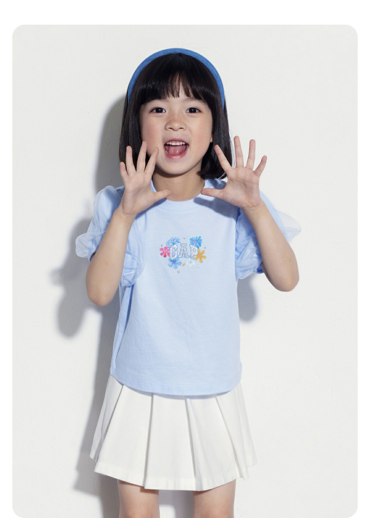 商品名称:Gap女幼童2024春秋季印花网纱泡泡短袖T恤儿童装上衣466776 172826