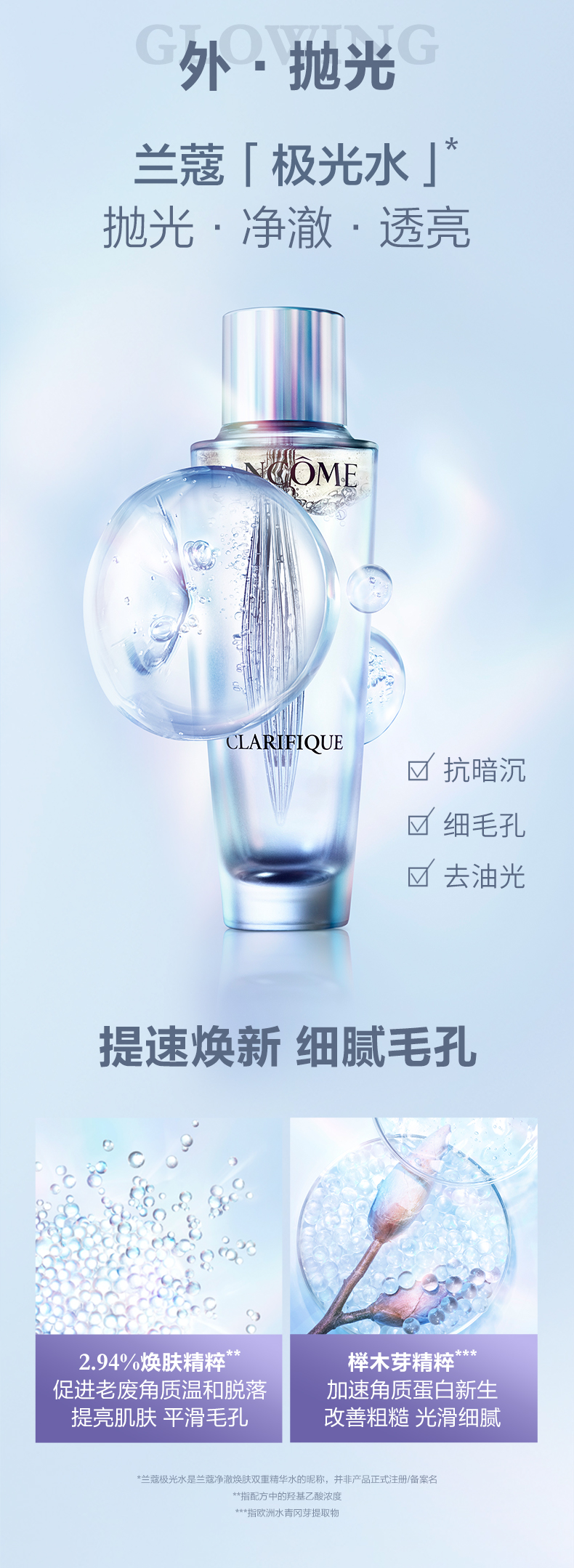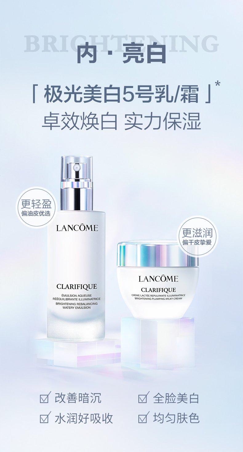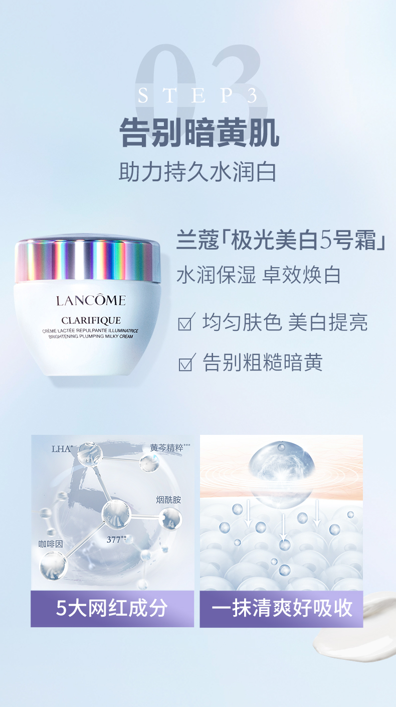 商品名称:Lancome/兰蔻 净澈修护三件套 极光水250ml+小黑瓶100ml+亮白霜50ml