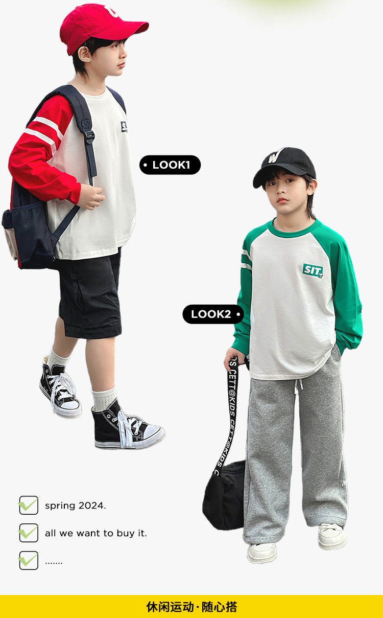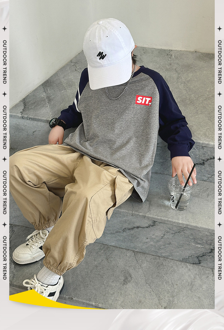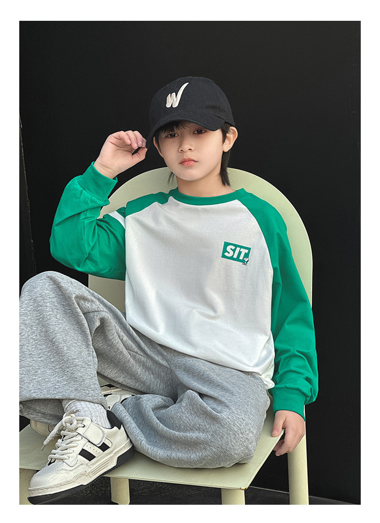 【撞色插肩袖】男童T恤春季中大童潮酷时尚百搭上衣儿童休闲T恤 260632