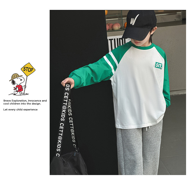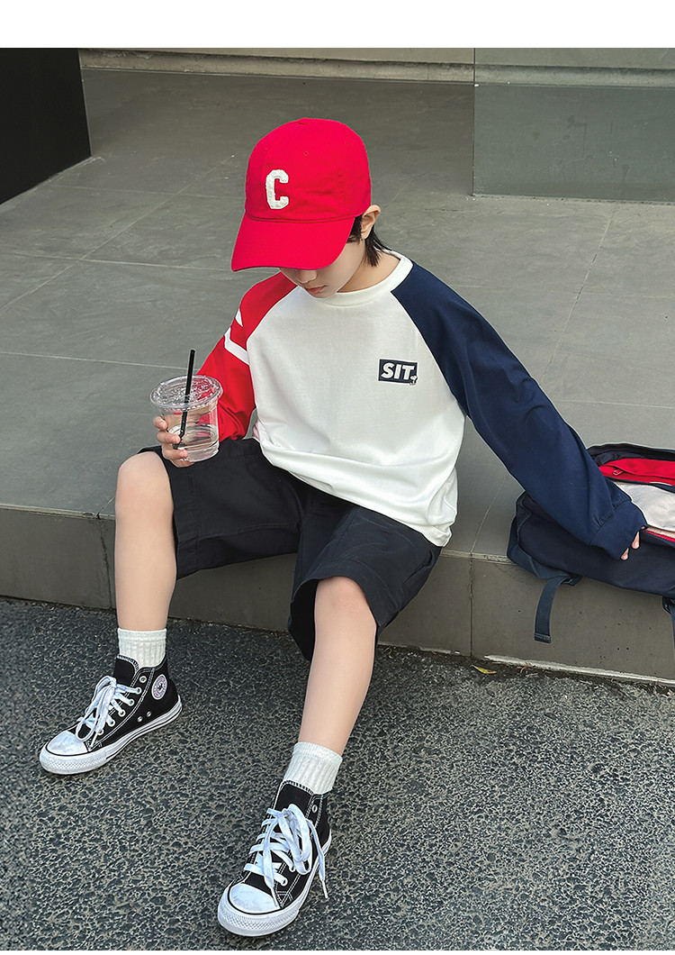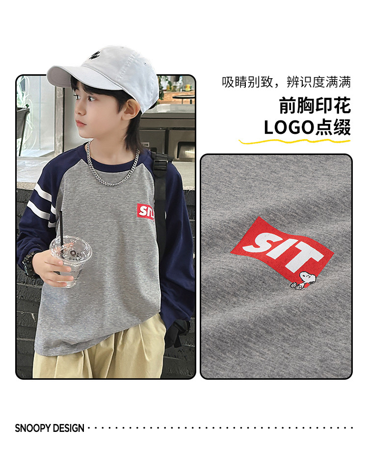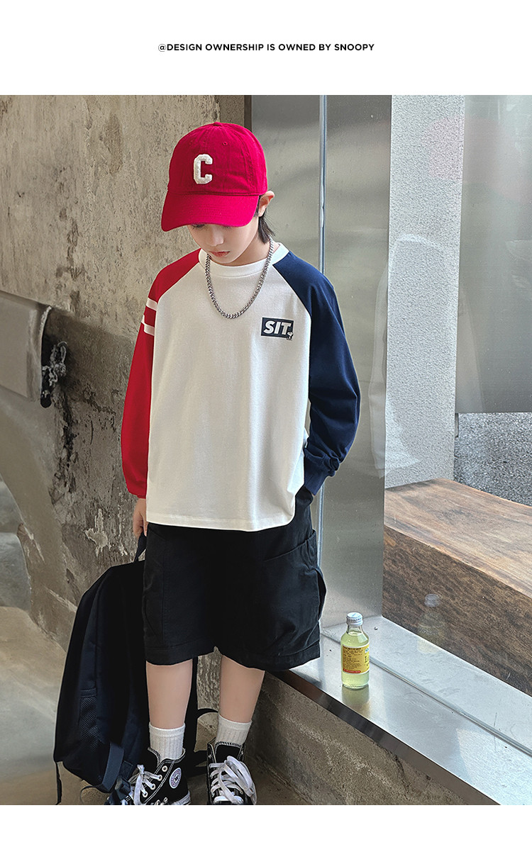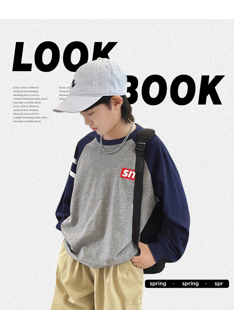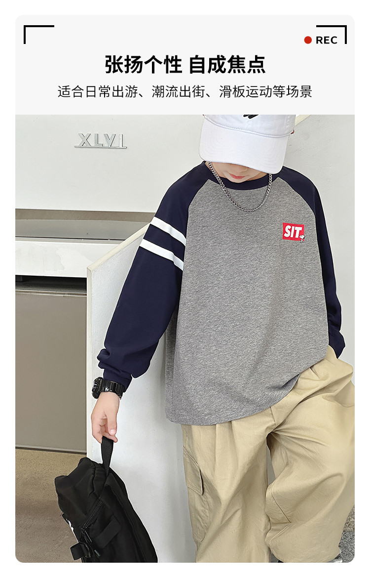 商品名称:【撞色插肩袖】男童T恤春季中大童潮酷时尚百搭上衣儿童休闲T恤 260632