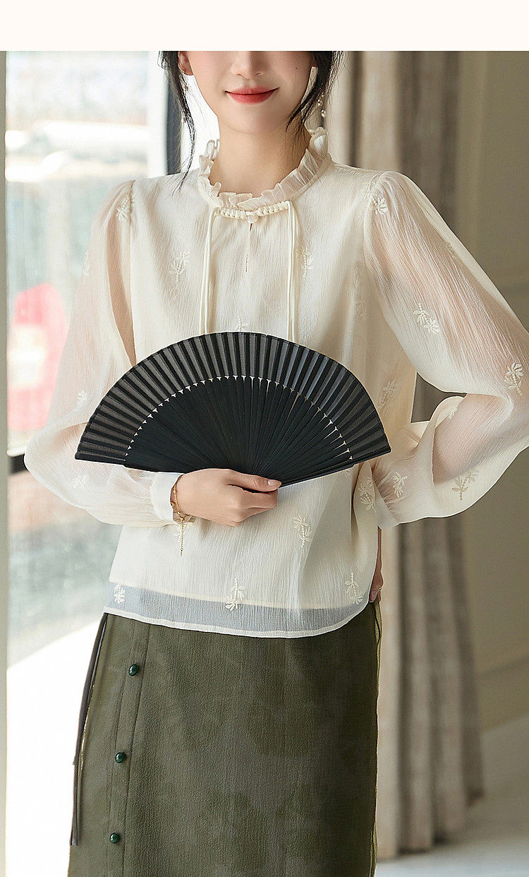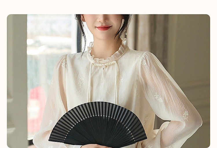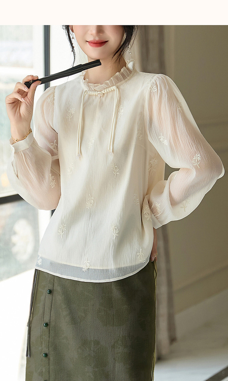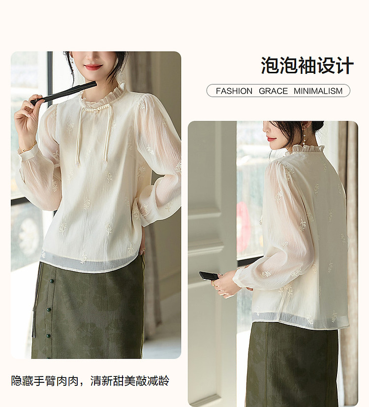 商品名称:【尤记江南雪】国风新中式刺绣雪纺衬衫盘扣舒适藏肉衬衣女装上衣 560449