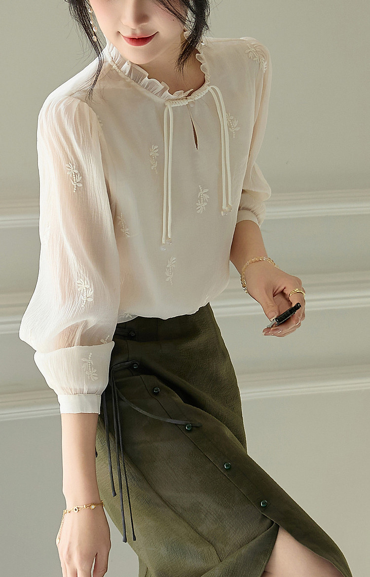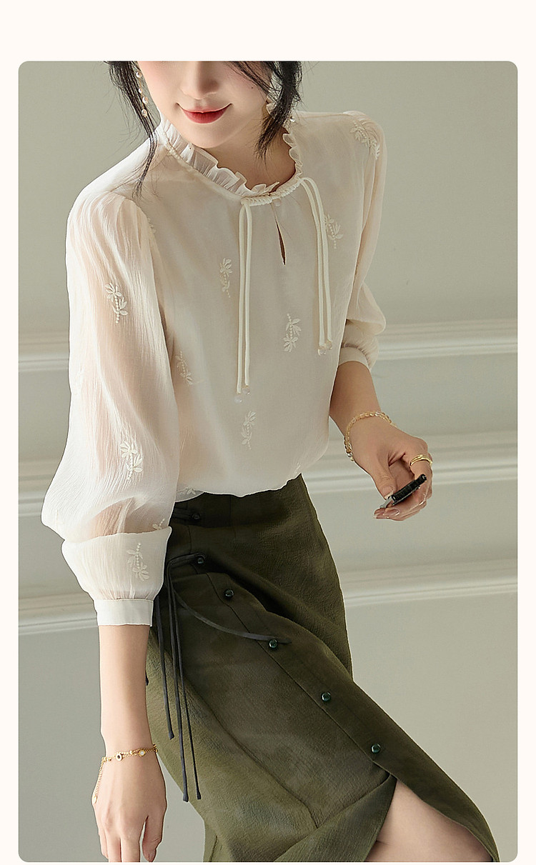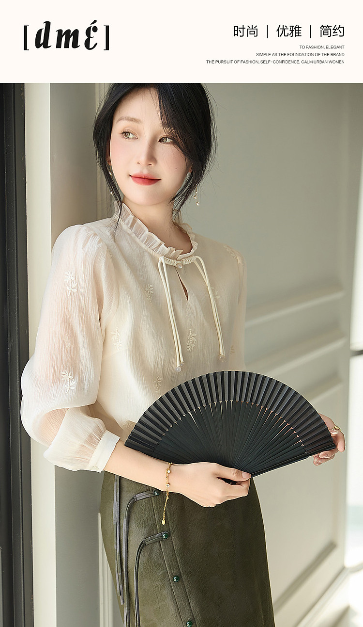 【尤记江南雪】国风新中式刺绣雪纺衬衫盘扣舒适藏肉衬衣女装上衣 560449