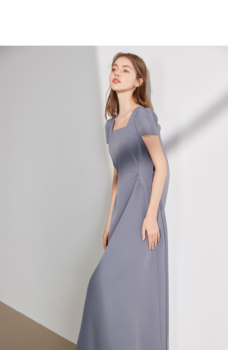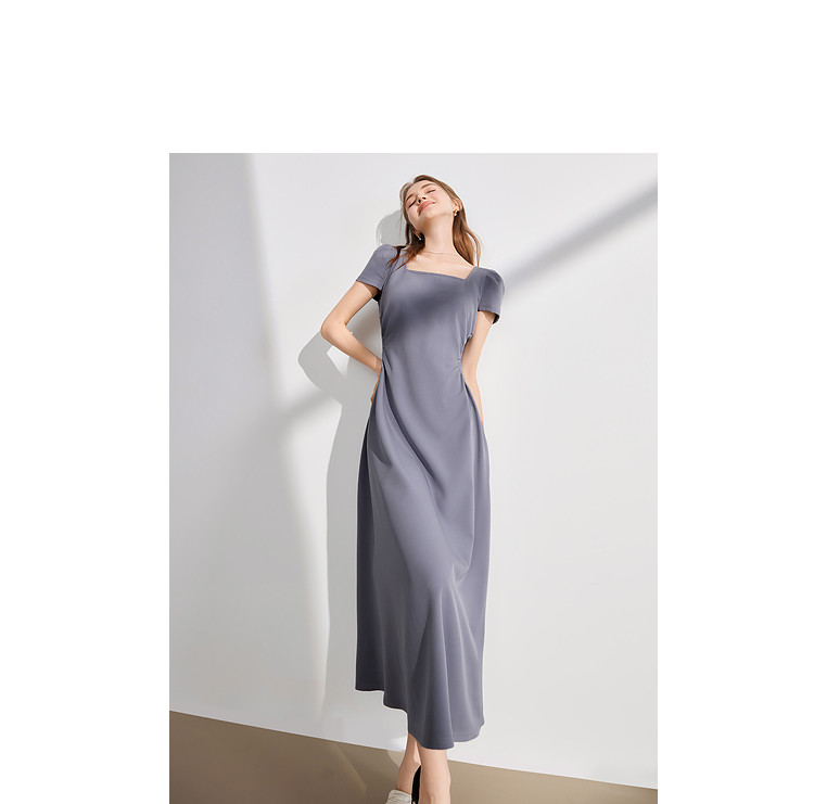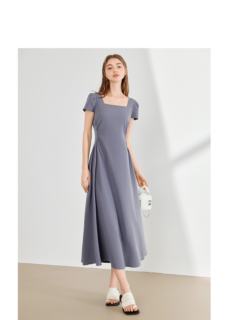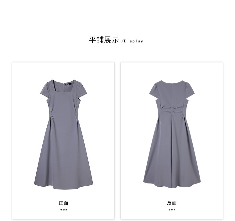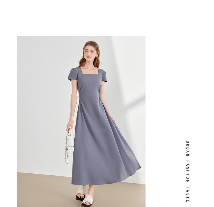 商品名称:【夏季热卖】法式优雅收腰连衣裙休闲气质方领纯色简约裙子 016468