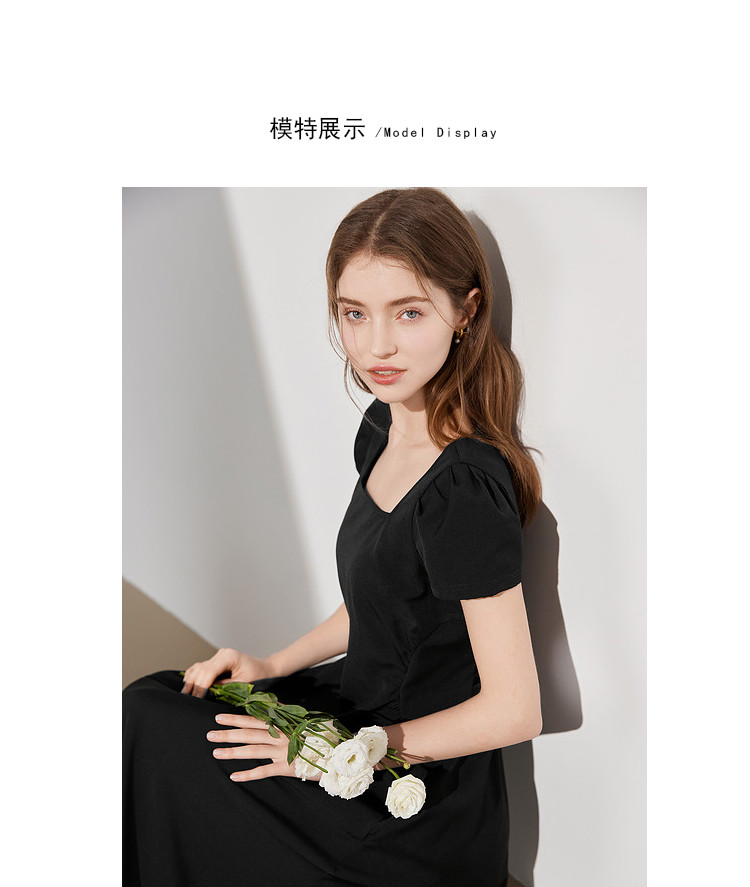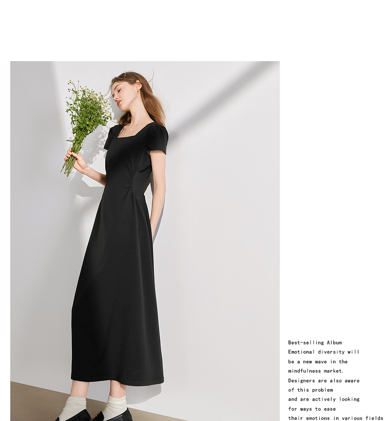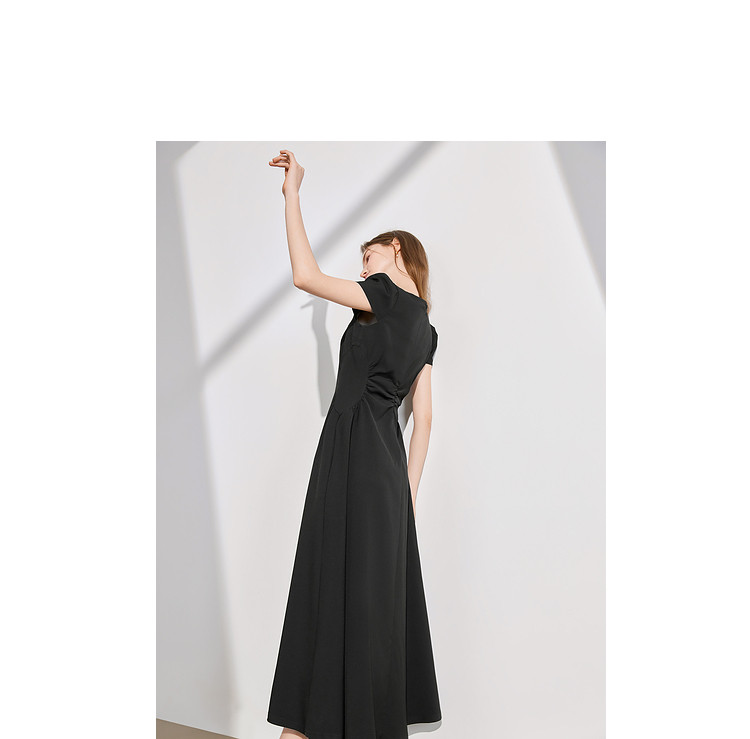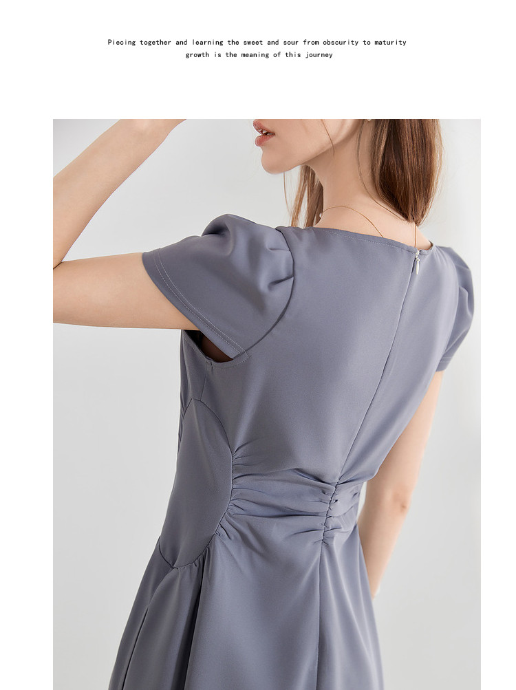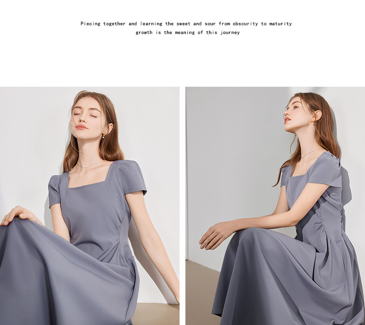 商品名称:【夏季热卖】法式优雅收腰连衣裙休闲气质方领纯色简约裙子 016468
