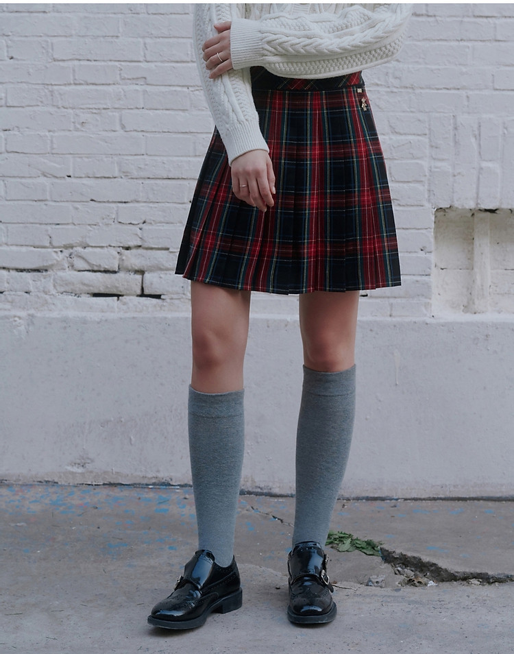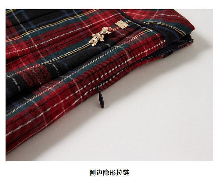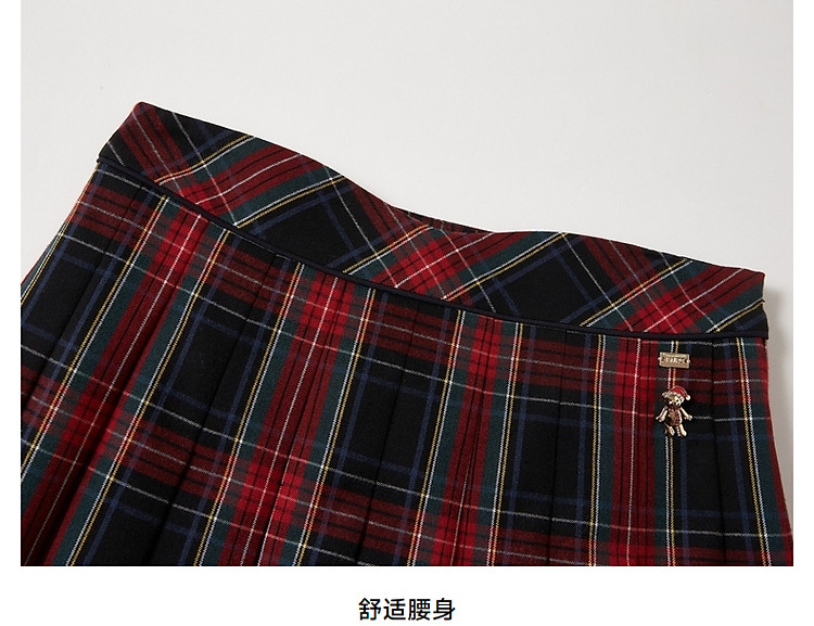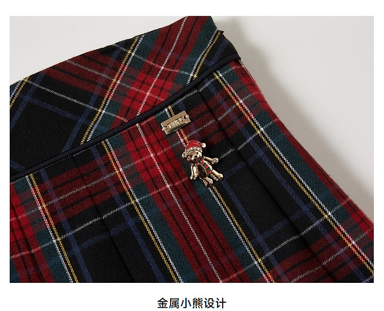 商品名称:小熊春秋款高腰学院风格纹百褶裙A字短裙时尚气质 921345