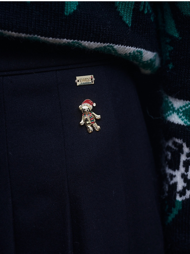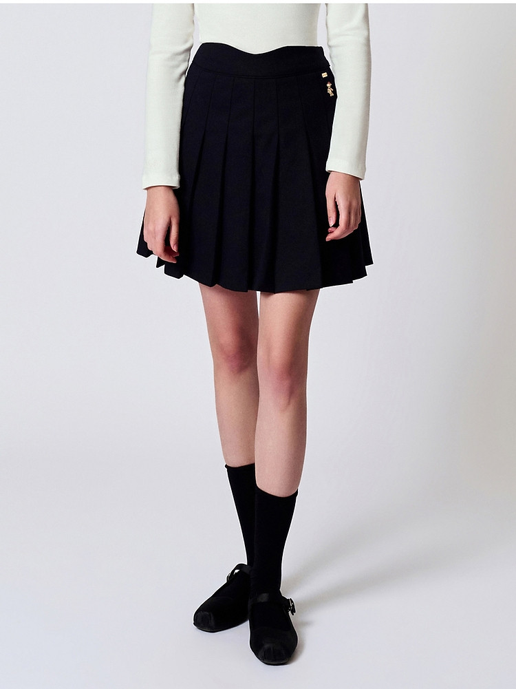 小熊春秋款高腰学院风格纹百褶裙A字短裙时尚气质 921345