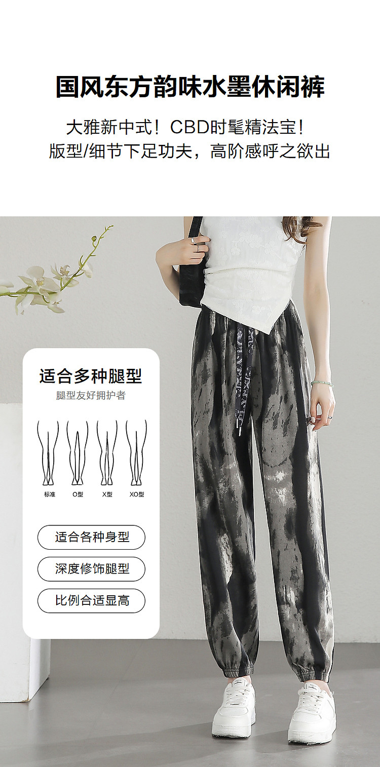 商品名称:【国风水墨印象】夏爽滑飘逸薄款舒适松紧腰显瘦藏肉休闲裤 897857