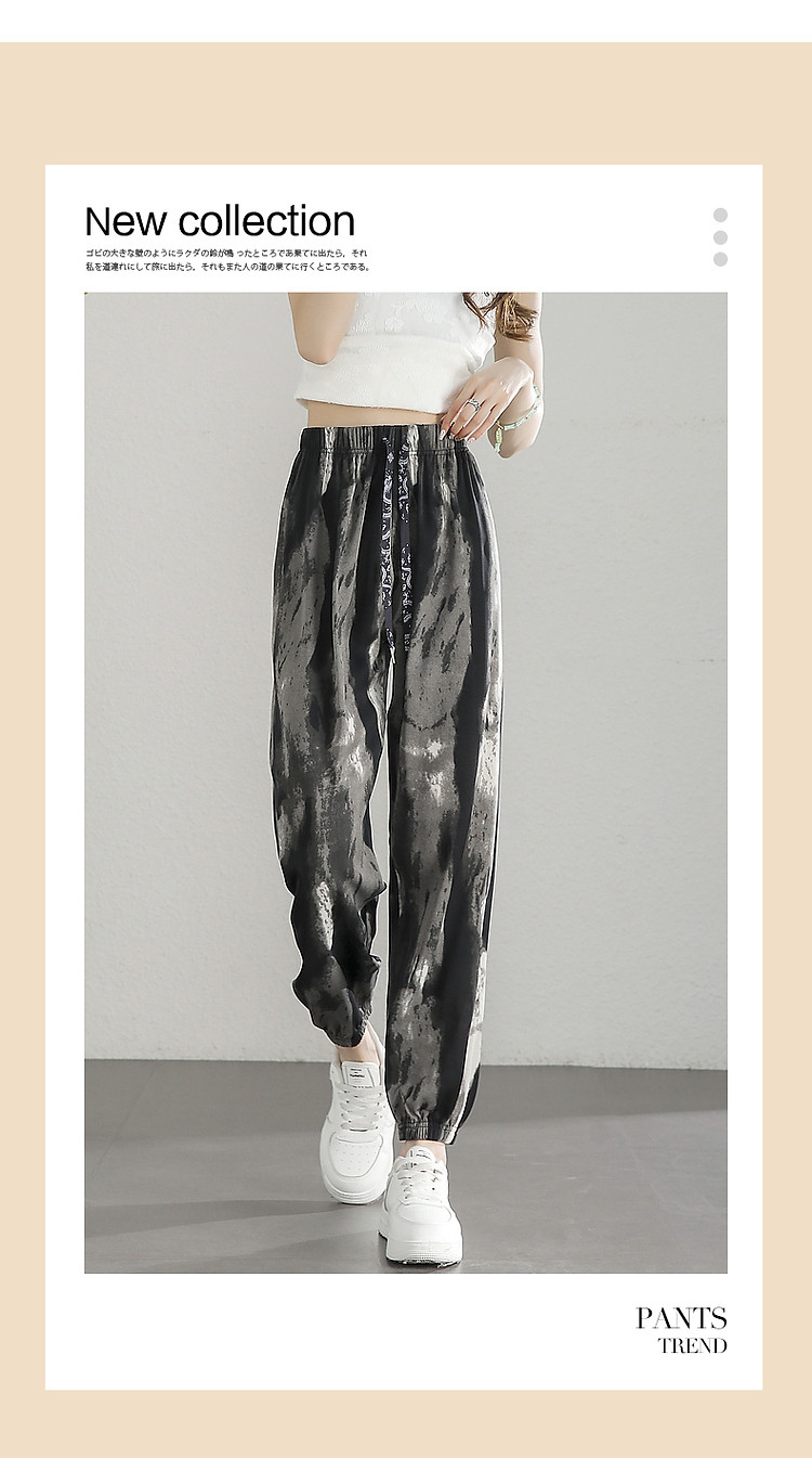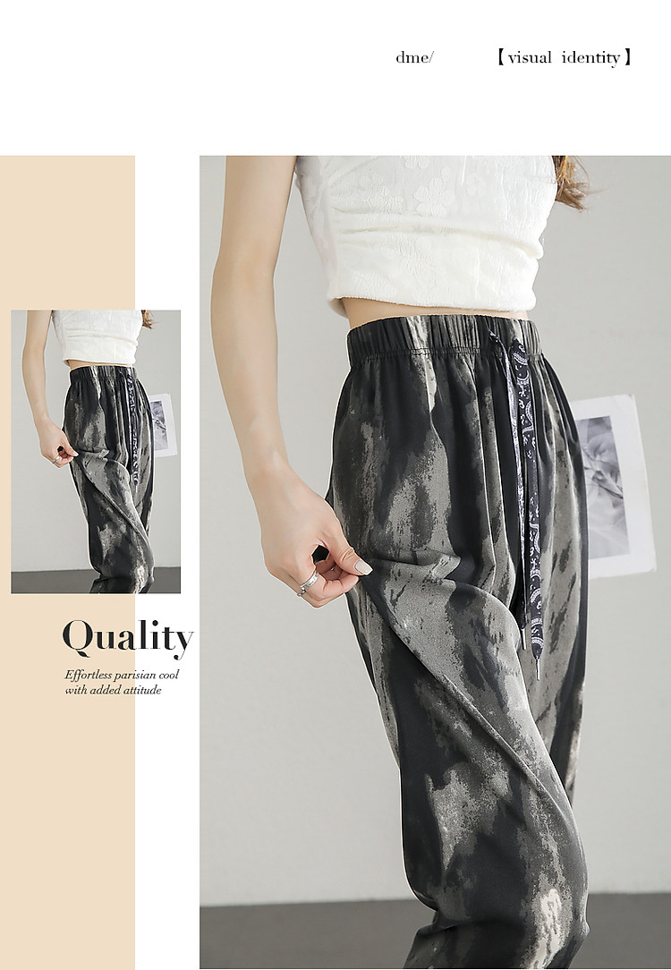 【国风水墨印象】夏爽滑飘逸薄款舒适松紧腰显瘦藏肉休闲裤 897857