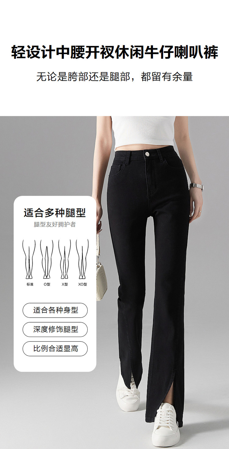 商品名称:【通勤开衩牛仔喇叭裤】春秋中腰长裤子女休闲牛仔裤 622337