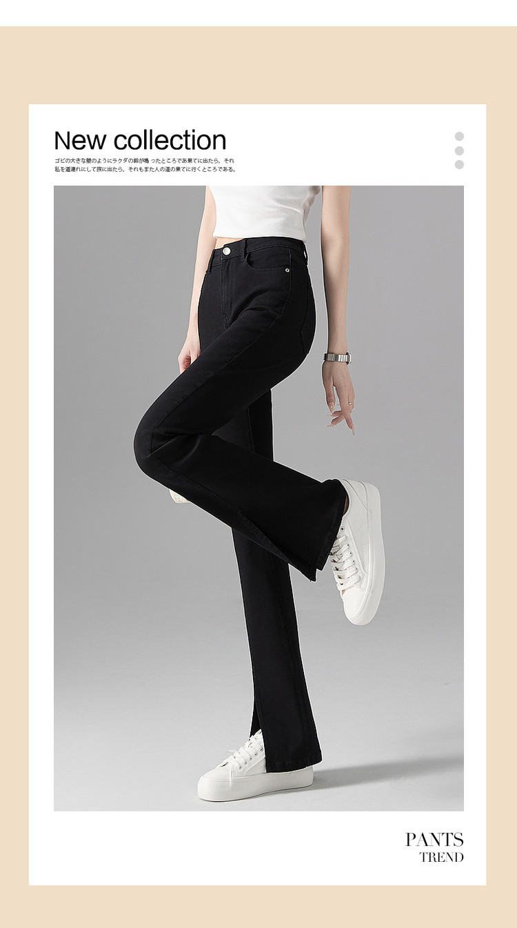 【通勤开衩牛仔喇叭裤】春秋中腰长裤子女休闲牛仔裤 622337
