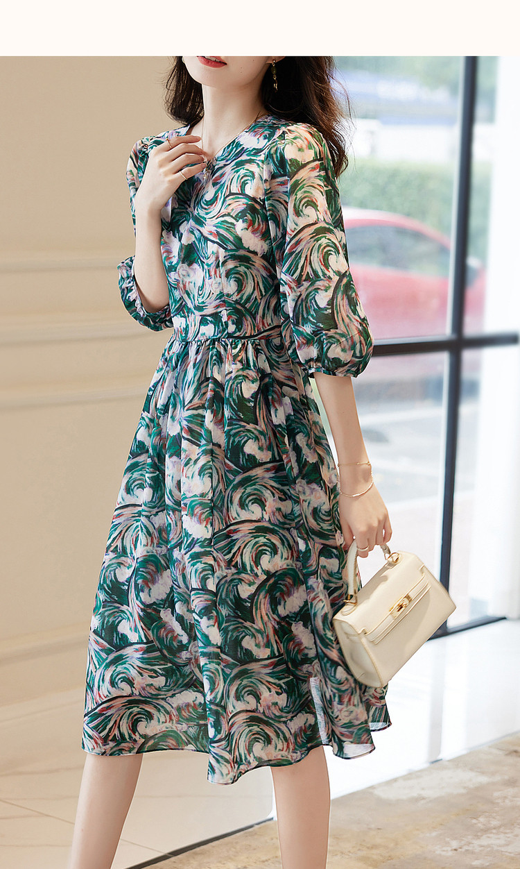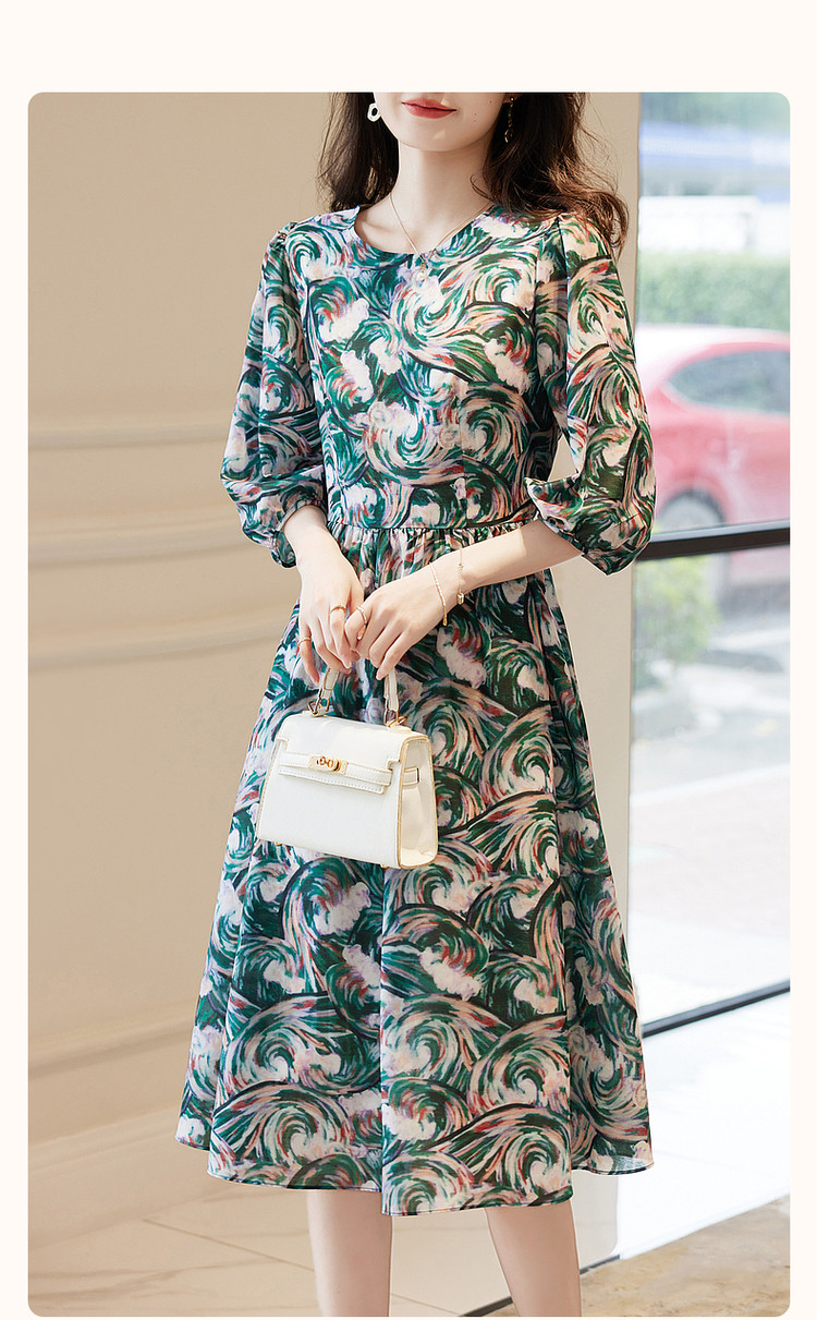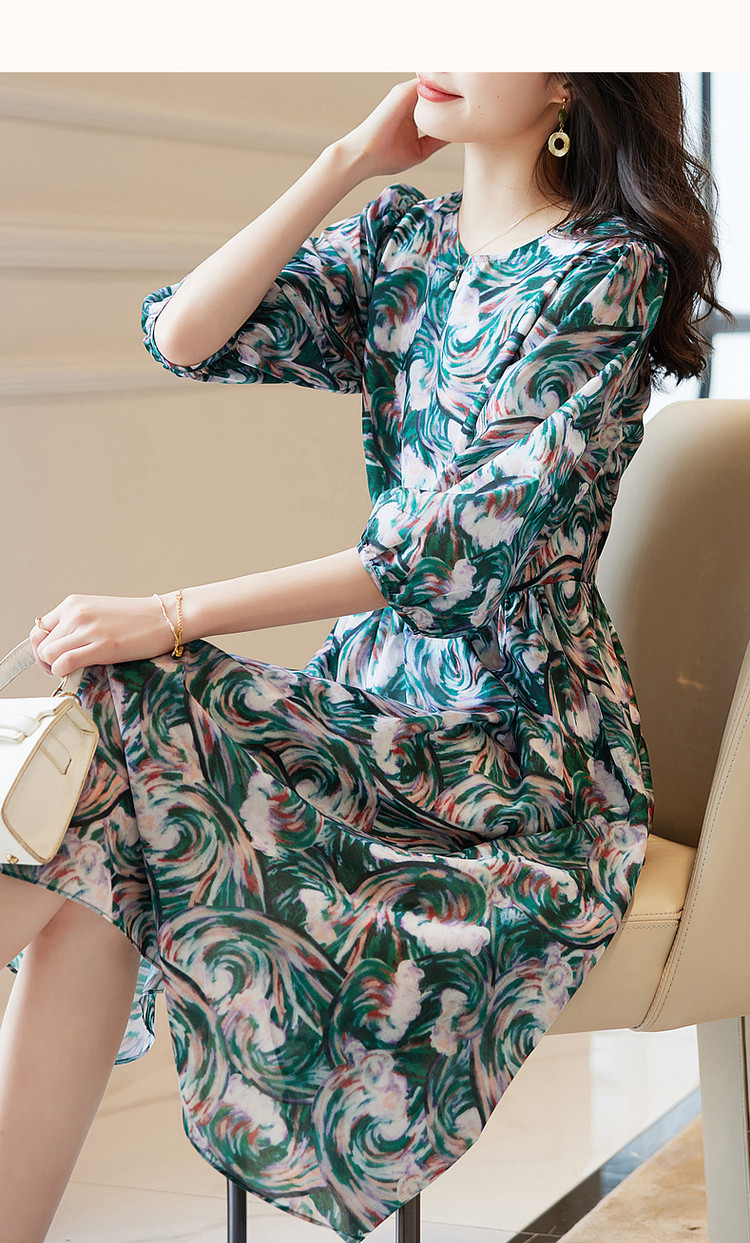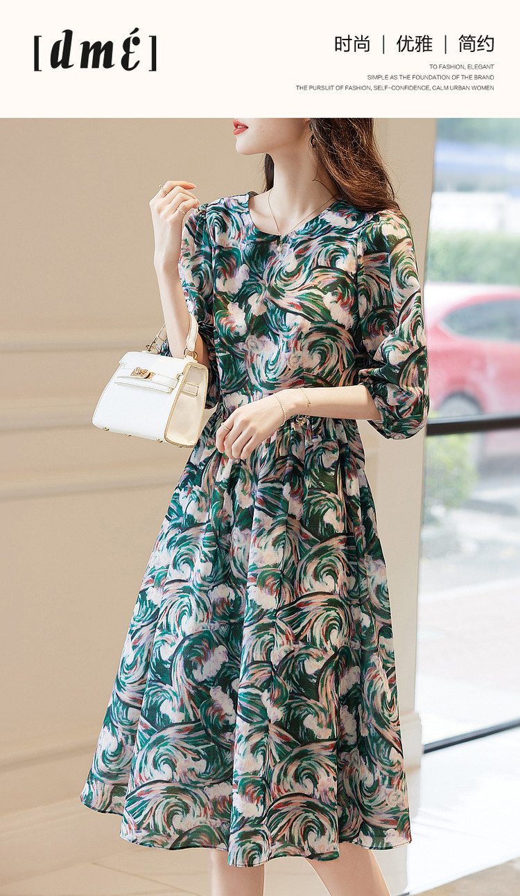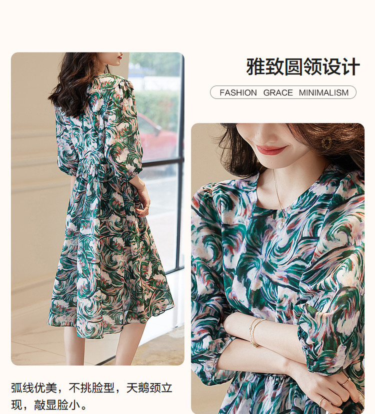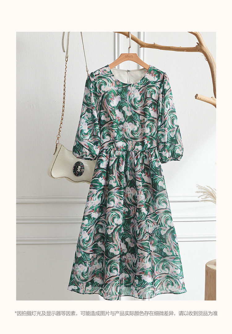 商品名称:【艺术感娃娃裙】春秋圆领收腰七分袖连衣裙女中长款 177665