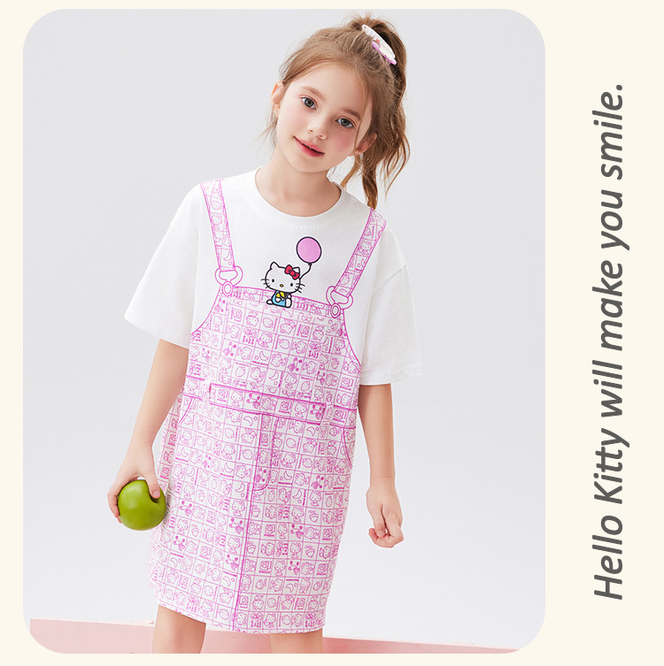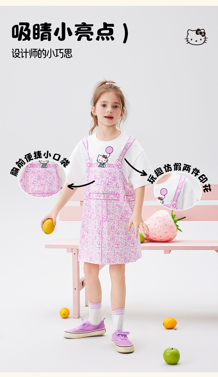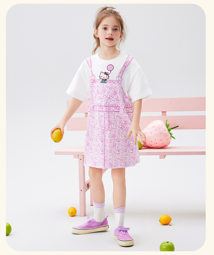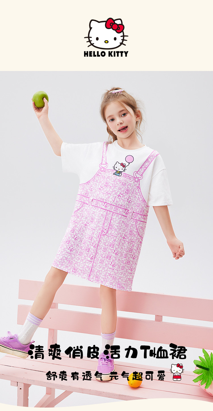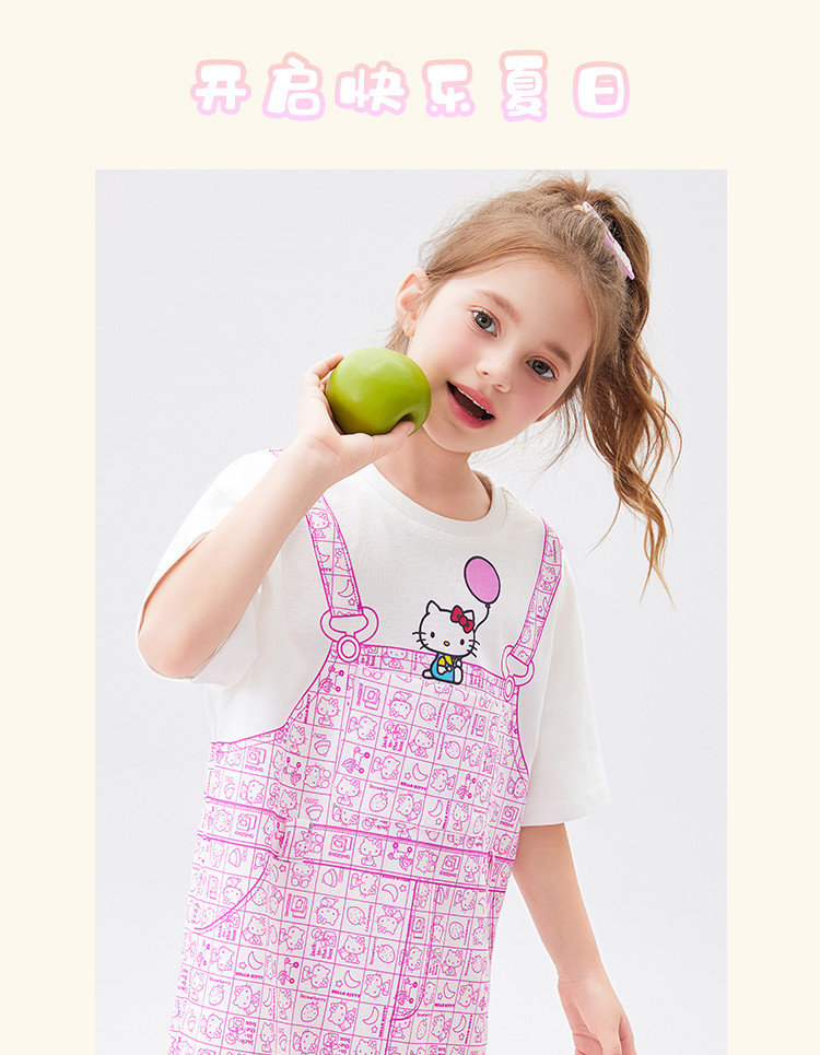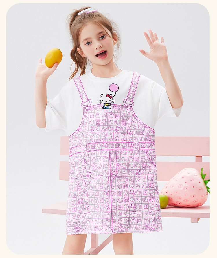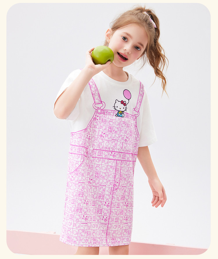 商品名称:【100%棉】女童夏季连衣裙2025款女宝仿假两件印花T恤裙 510366