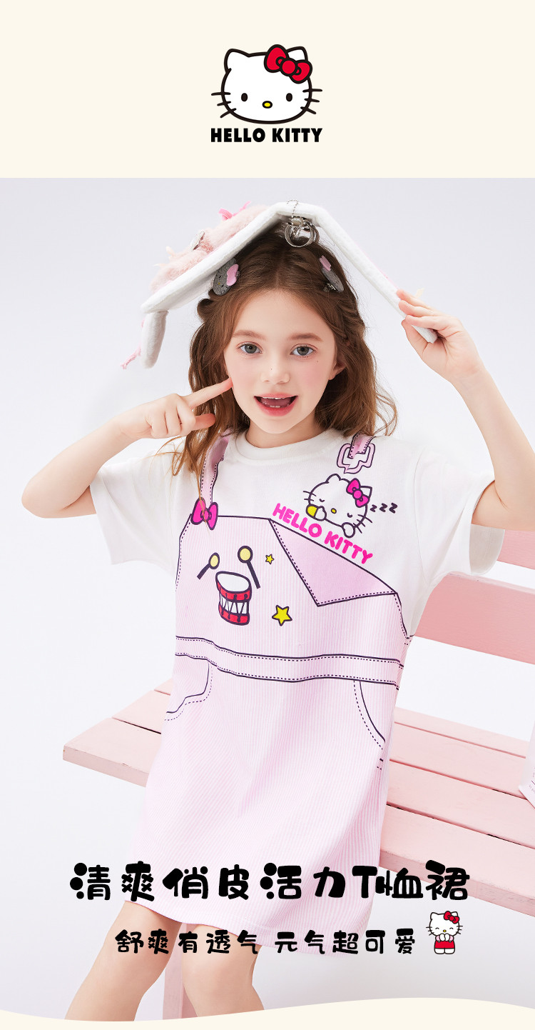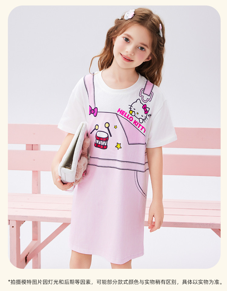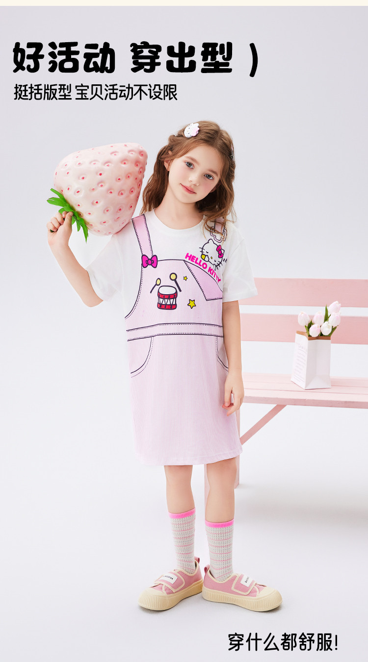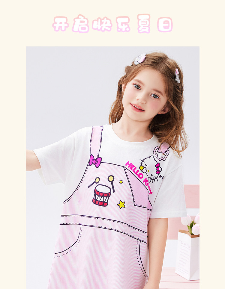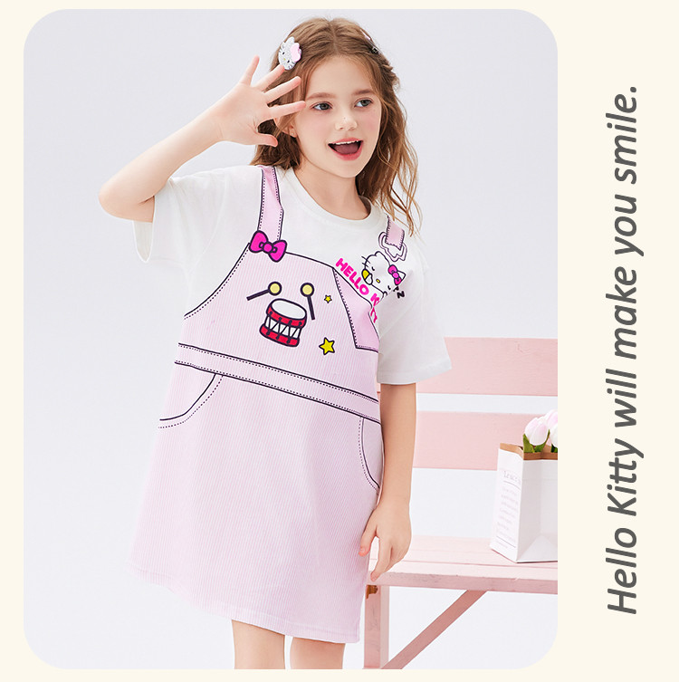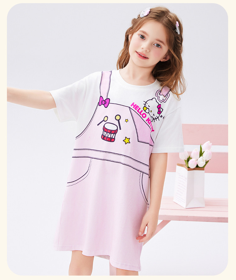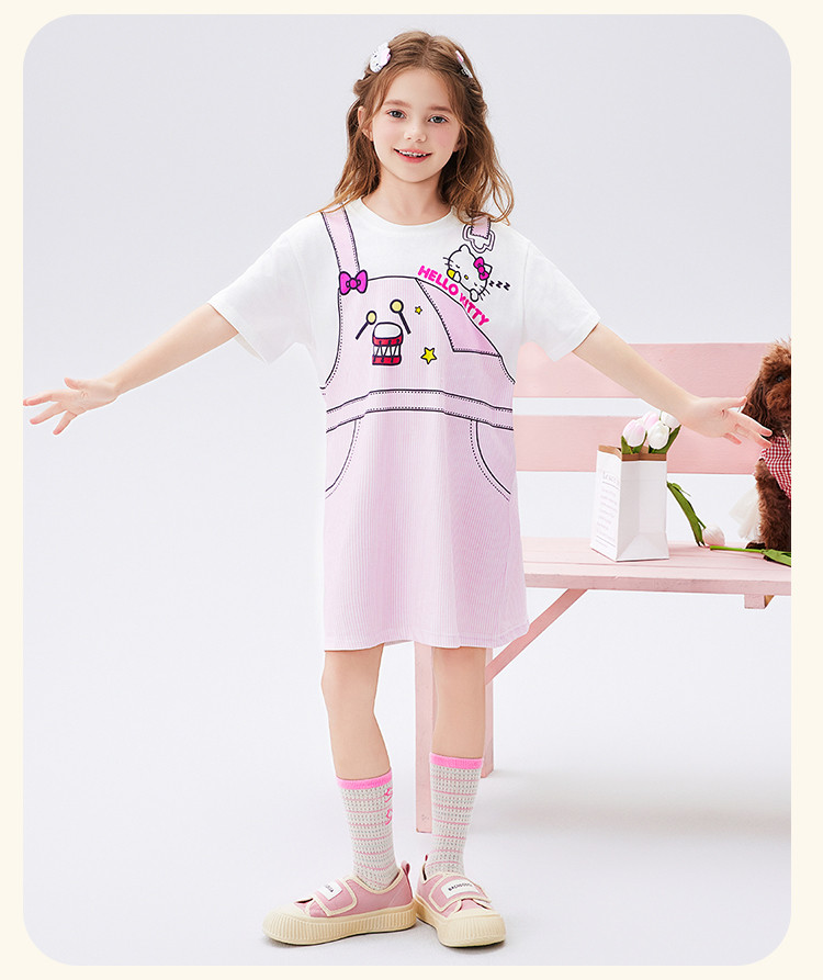商品名称:儿童夏季连衣裙2025款弹力罗纹圆领仿假两件印花设计中大童装 493982