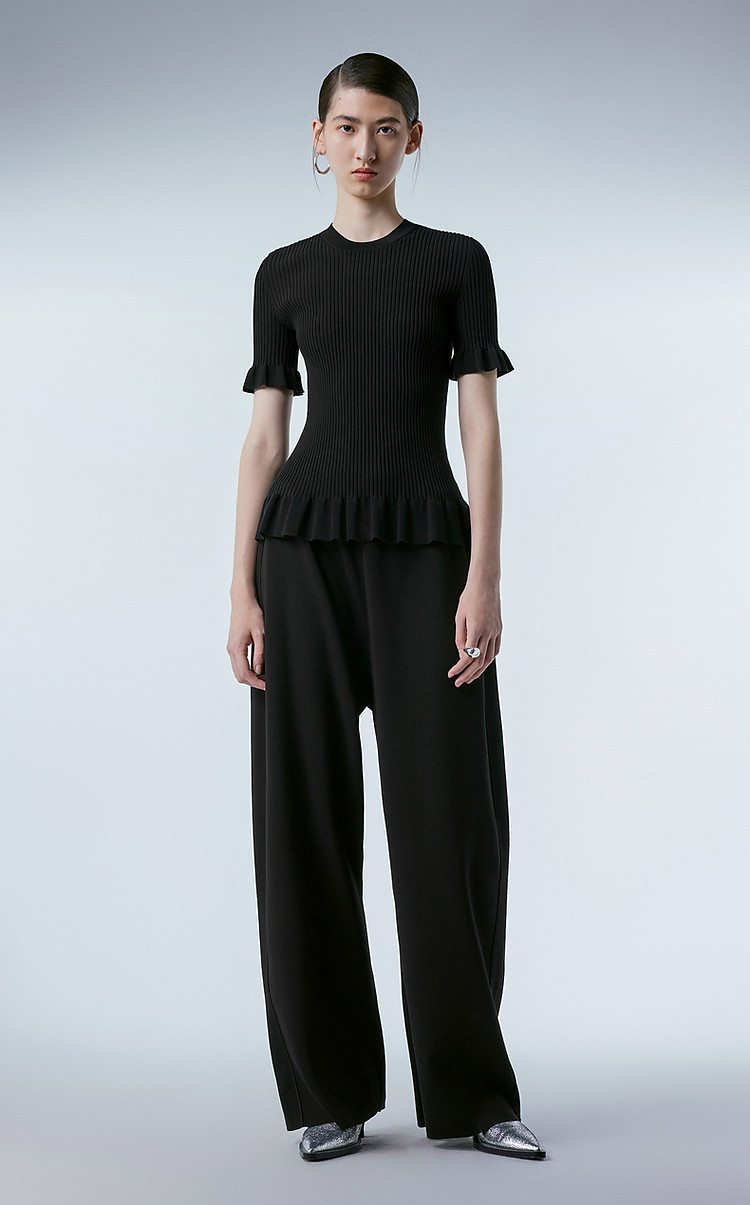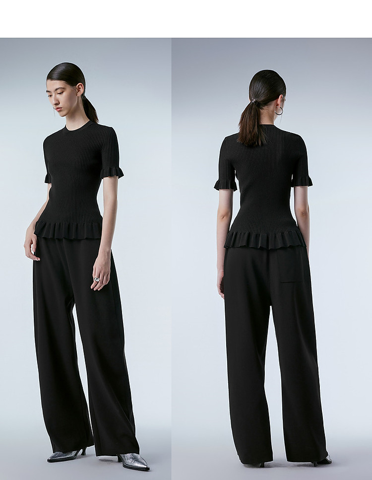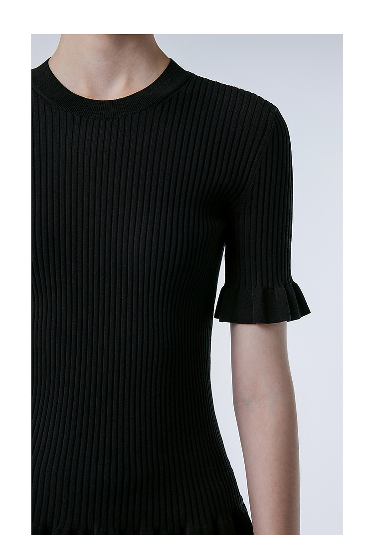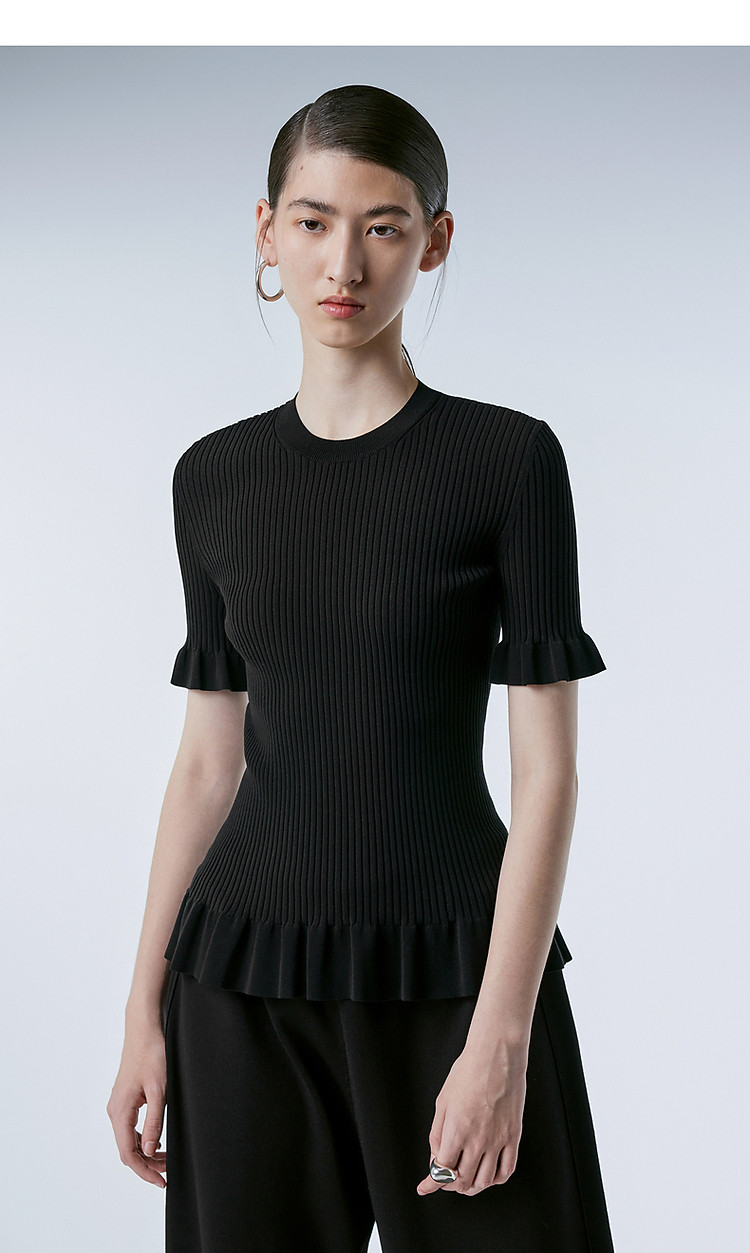 【含莱赛尔含桑蚕丝含棉】撞色圆领不规则设计感针织短袖休闲百搭 783455