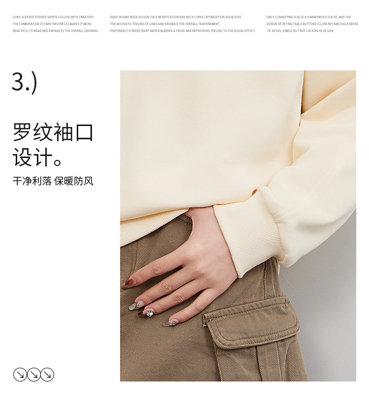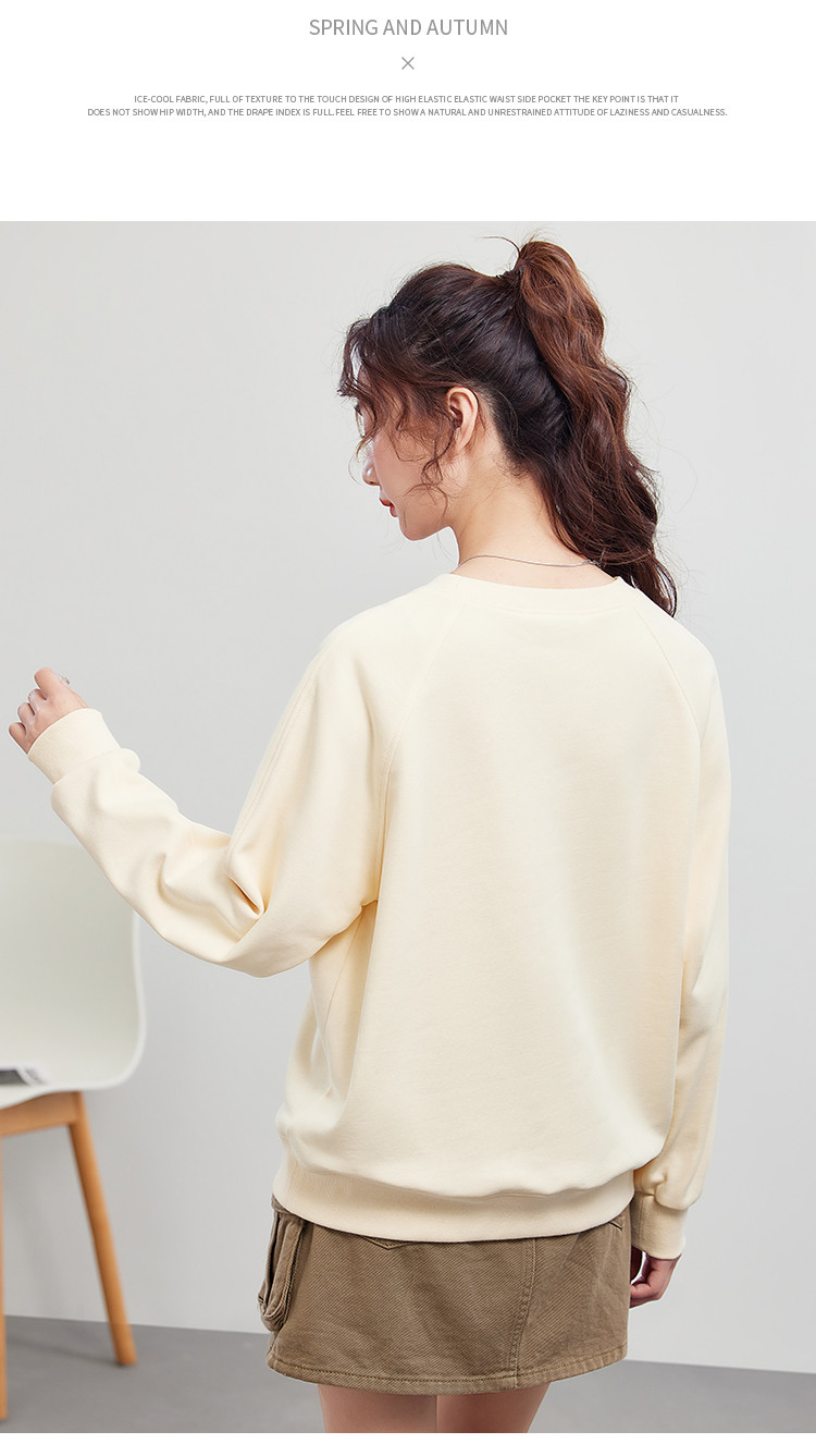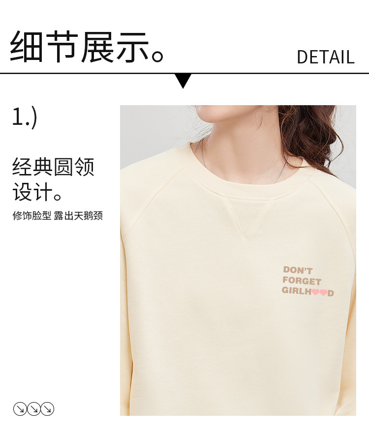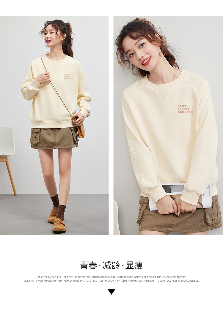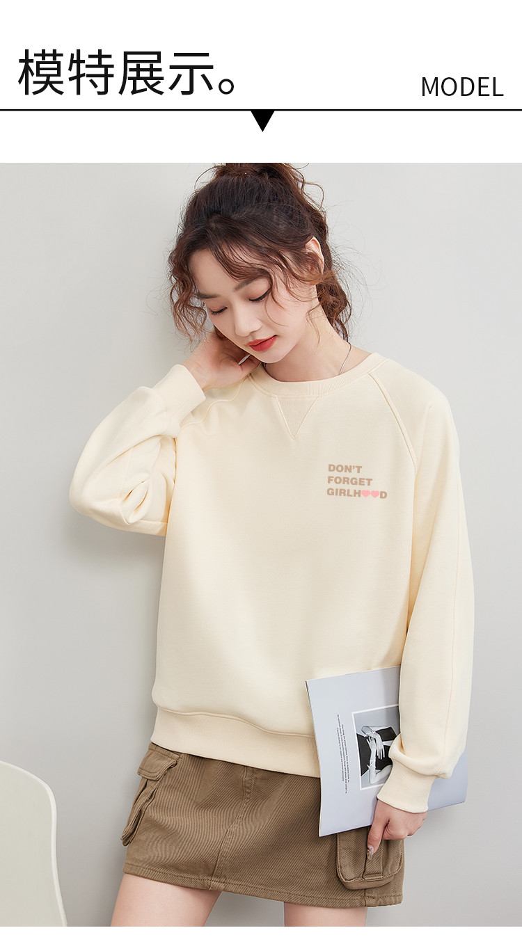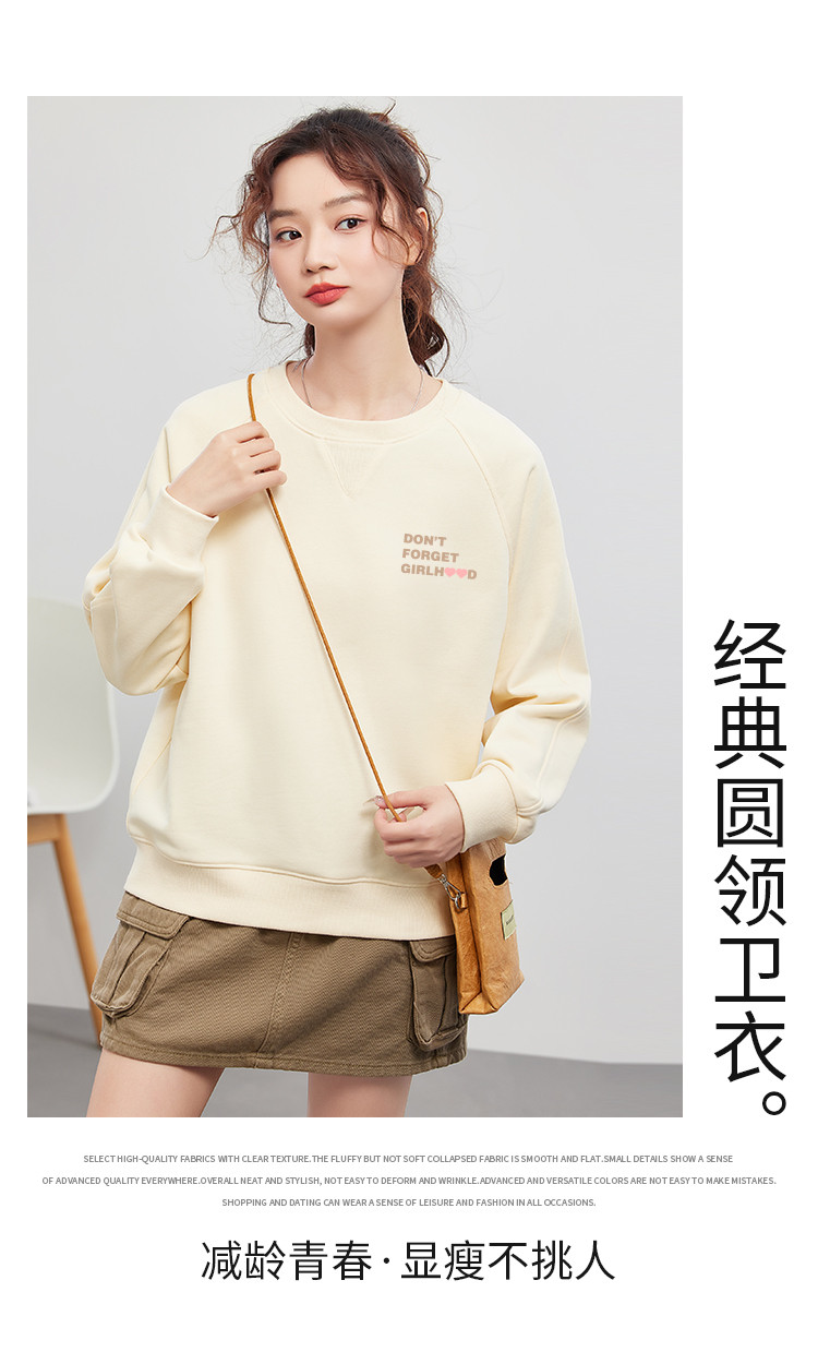商品名称:米子旗秋冬圆领字母印花女式卫衣简约通勤宽松休闲长袖上衣 172058