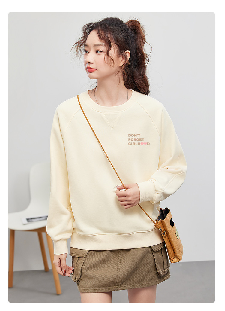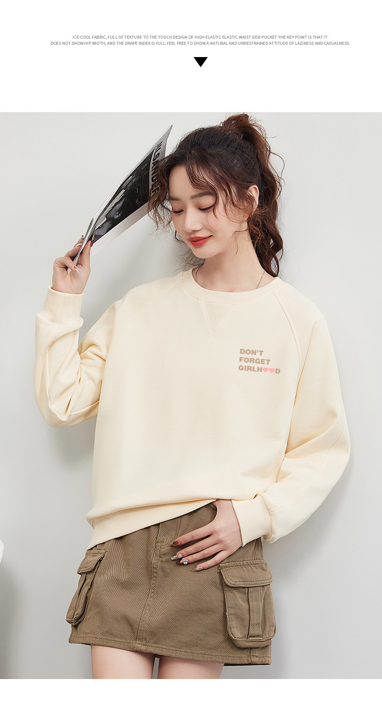 米子旗秋冬圆领字母印花女式卫衣简约通勤宽松休闲长袖上衣 172058