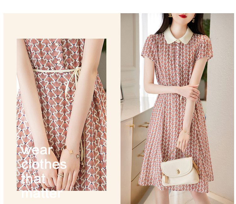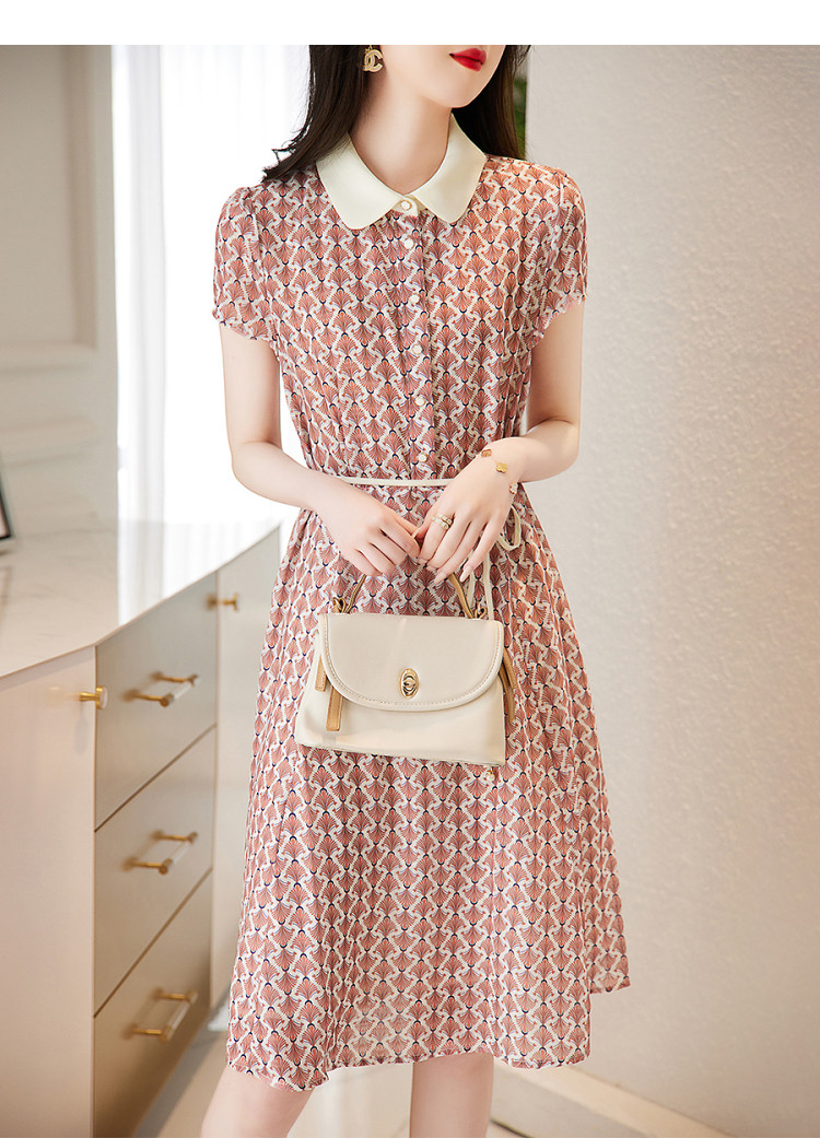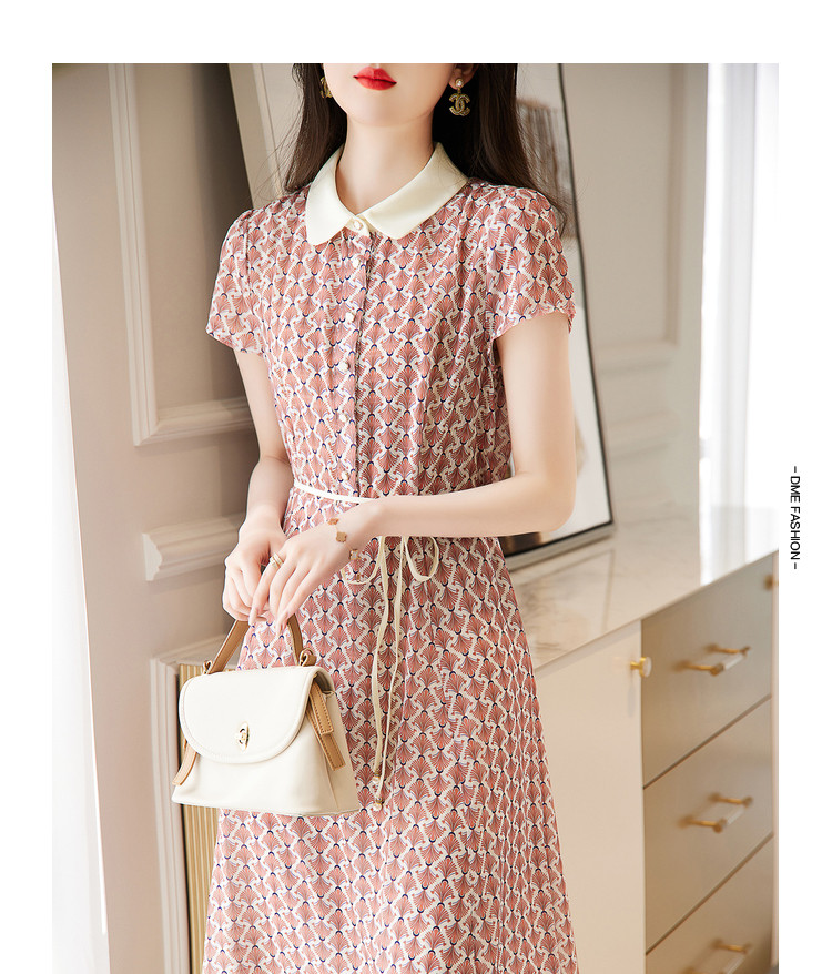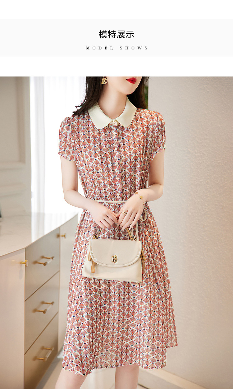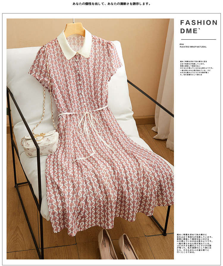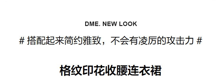 商品名称:【格纹印花】夏季五线格收腰珍珠吊钟连衣裙女夏 208833