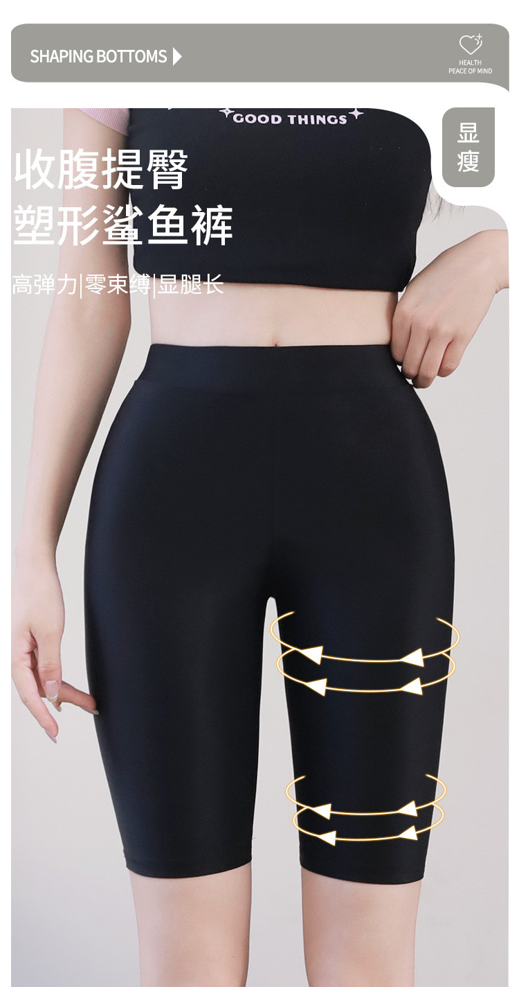 商品名称:夏季薄款女士打底裤女高腰收腹提臀高弹冰丝无痕鲨鱼裤骑行芭比裤 644171