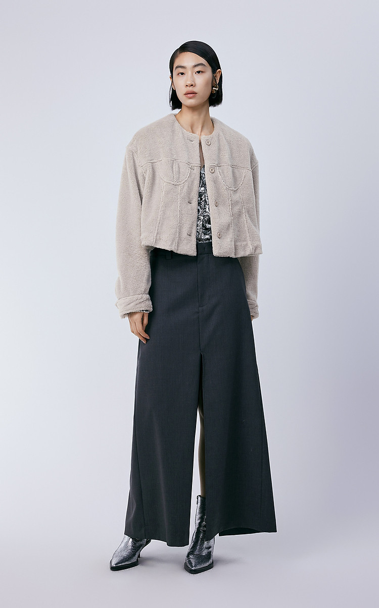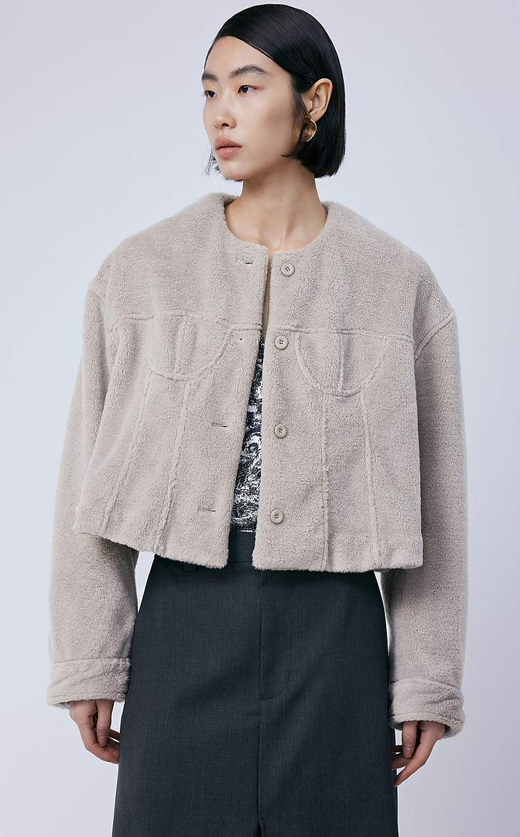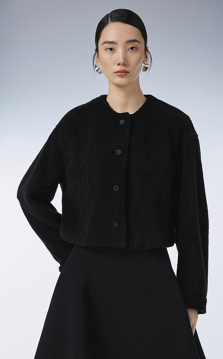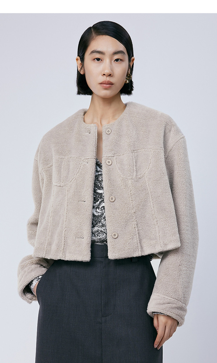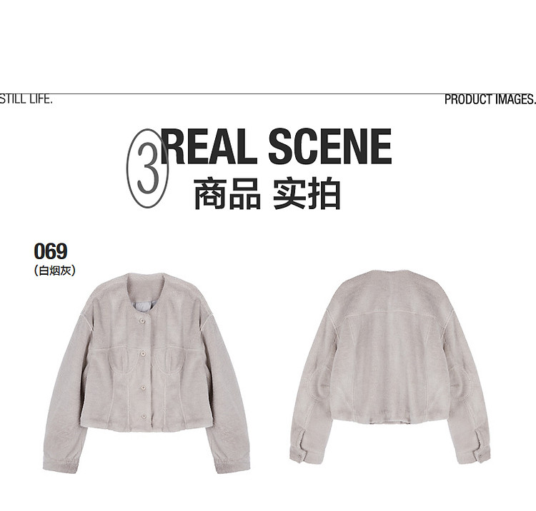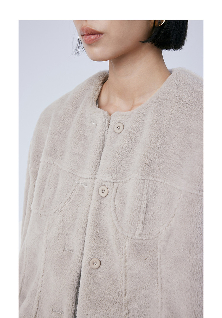 商品名称:春仿皮草宽松圆领长袖外套女 524747