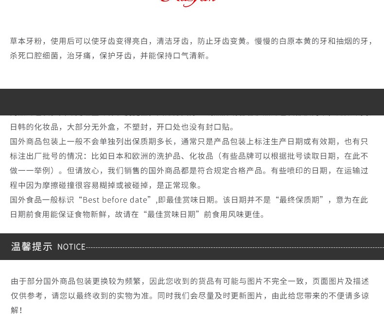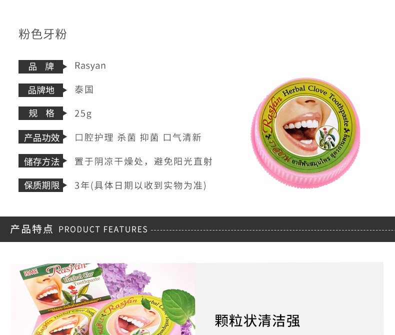 商品名称:RASYAN 粉色牙粉 25G