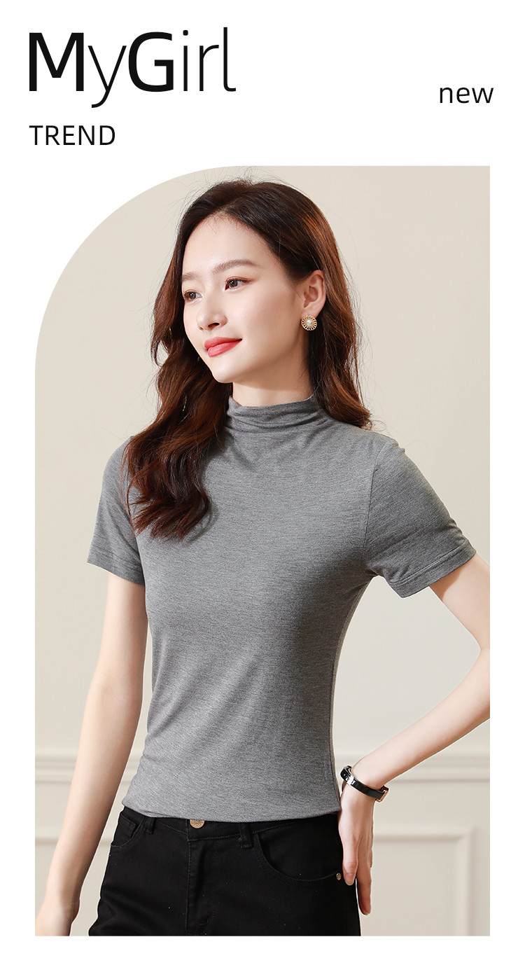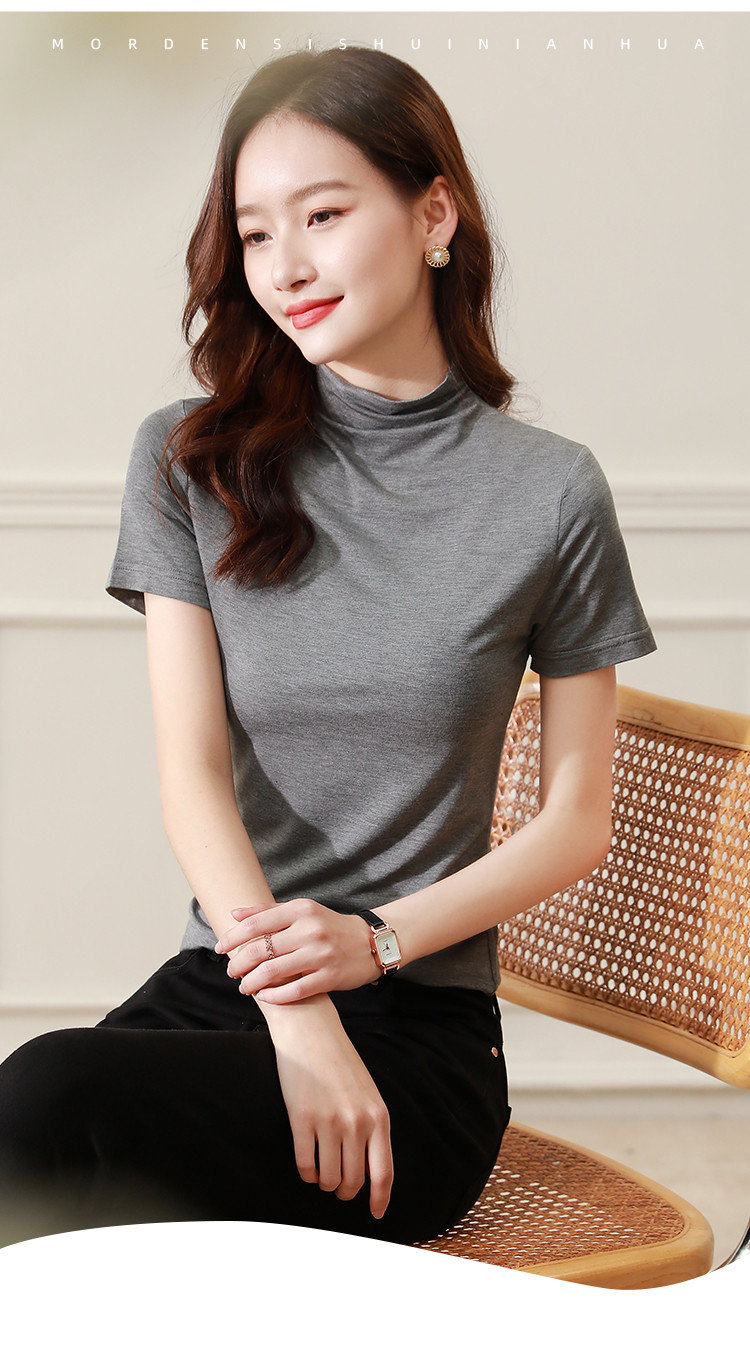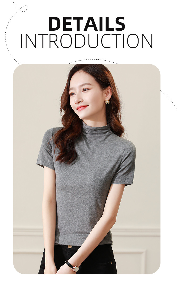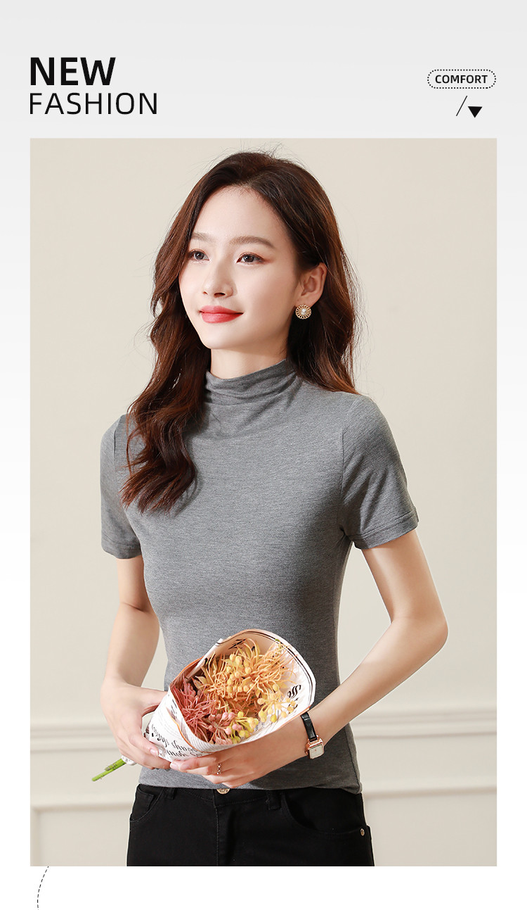 商品名称:半高领t恤女短袖显瘦气质内搭舒适贴身纯色打底衫 375576