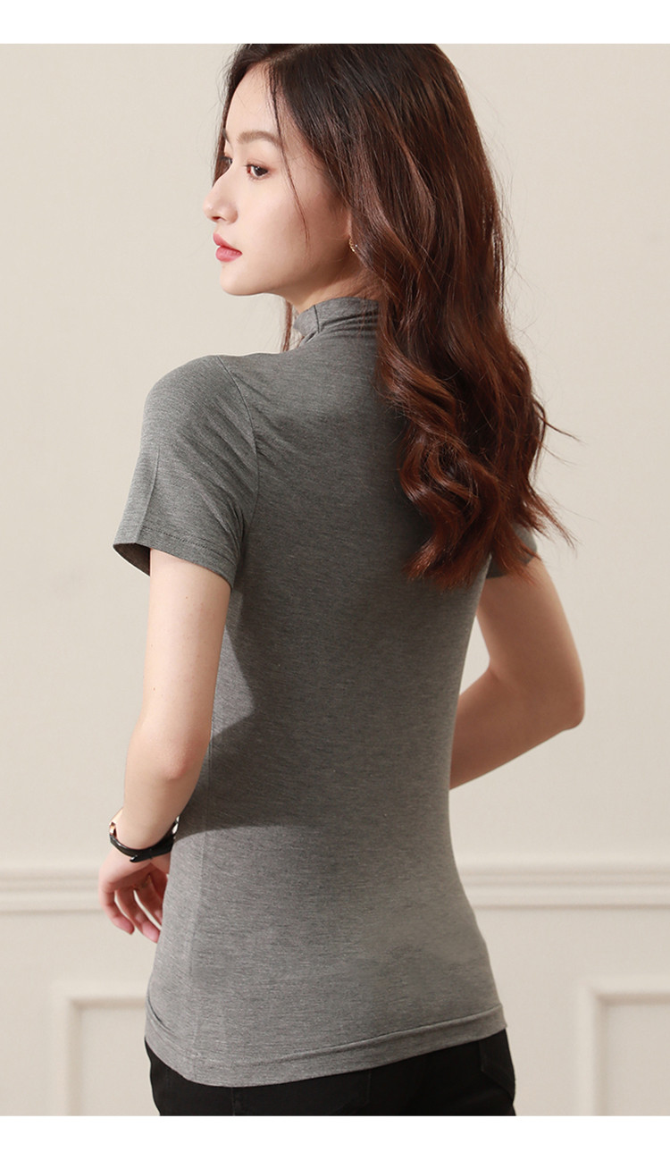 半高领t恤女短袖显瘦气质内搭舒适贴身纯色打底衫 375576