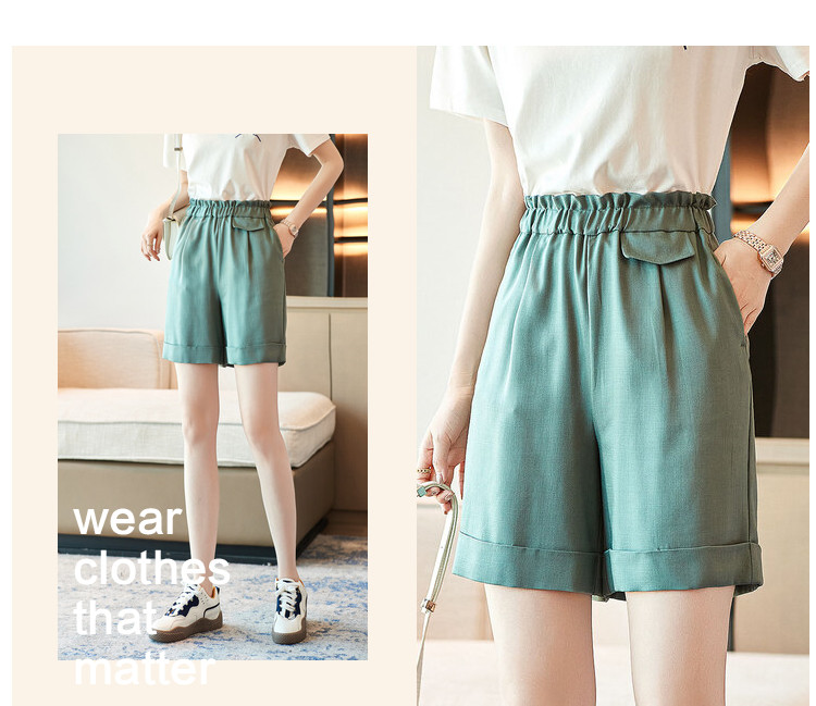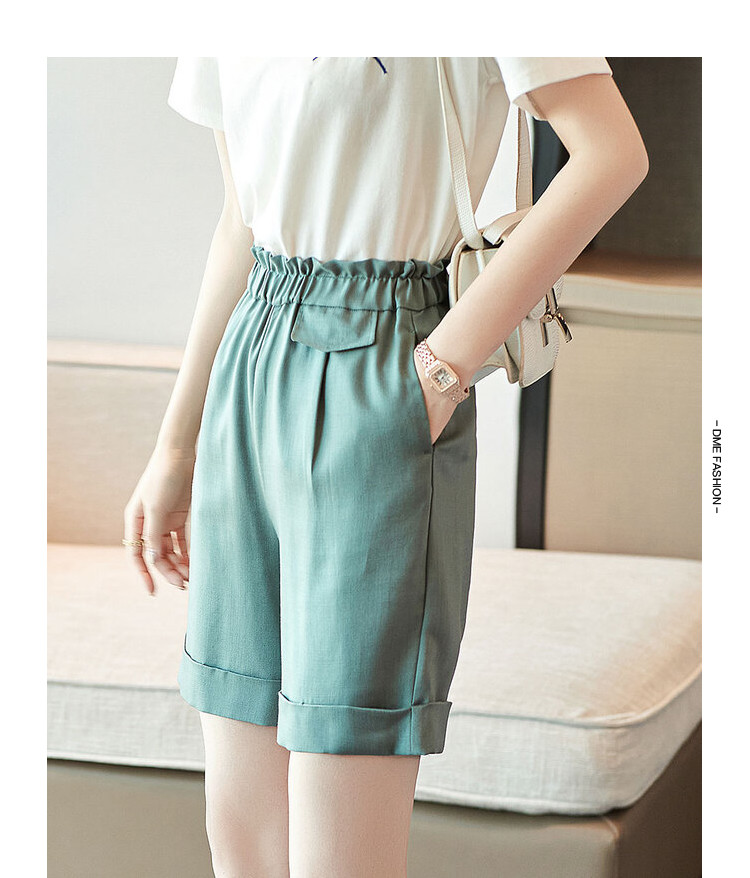 商品名称:【仿珠结满】夏新小A松紧腰女裤木耳边宽松甜美休闲裤女夏 303937