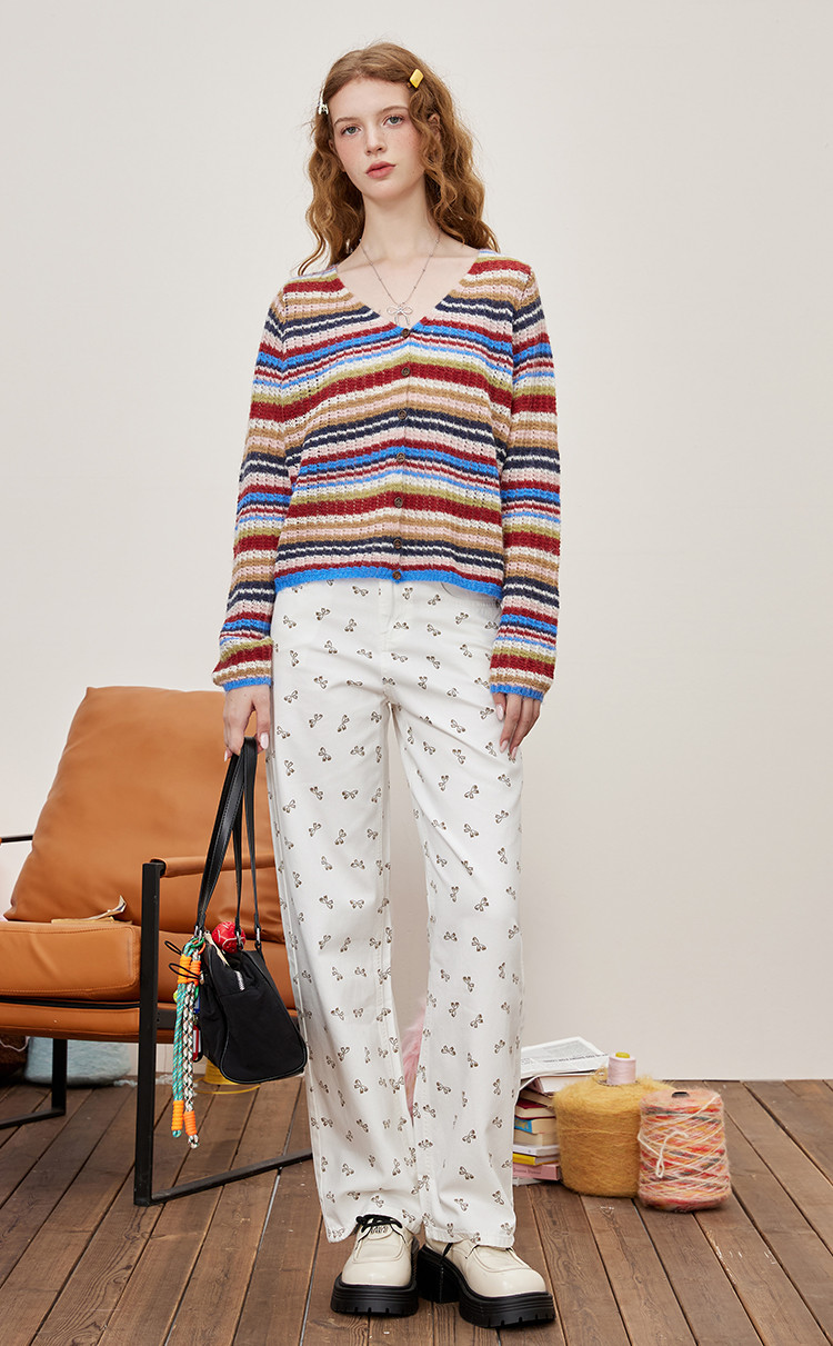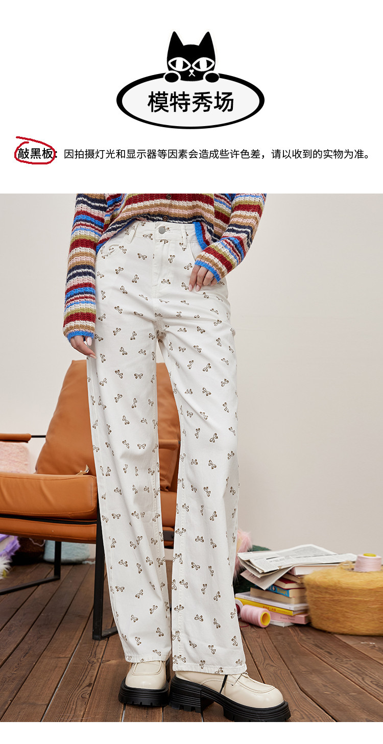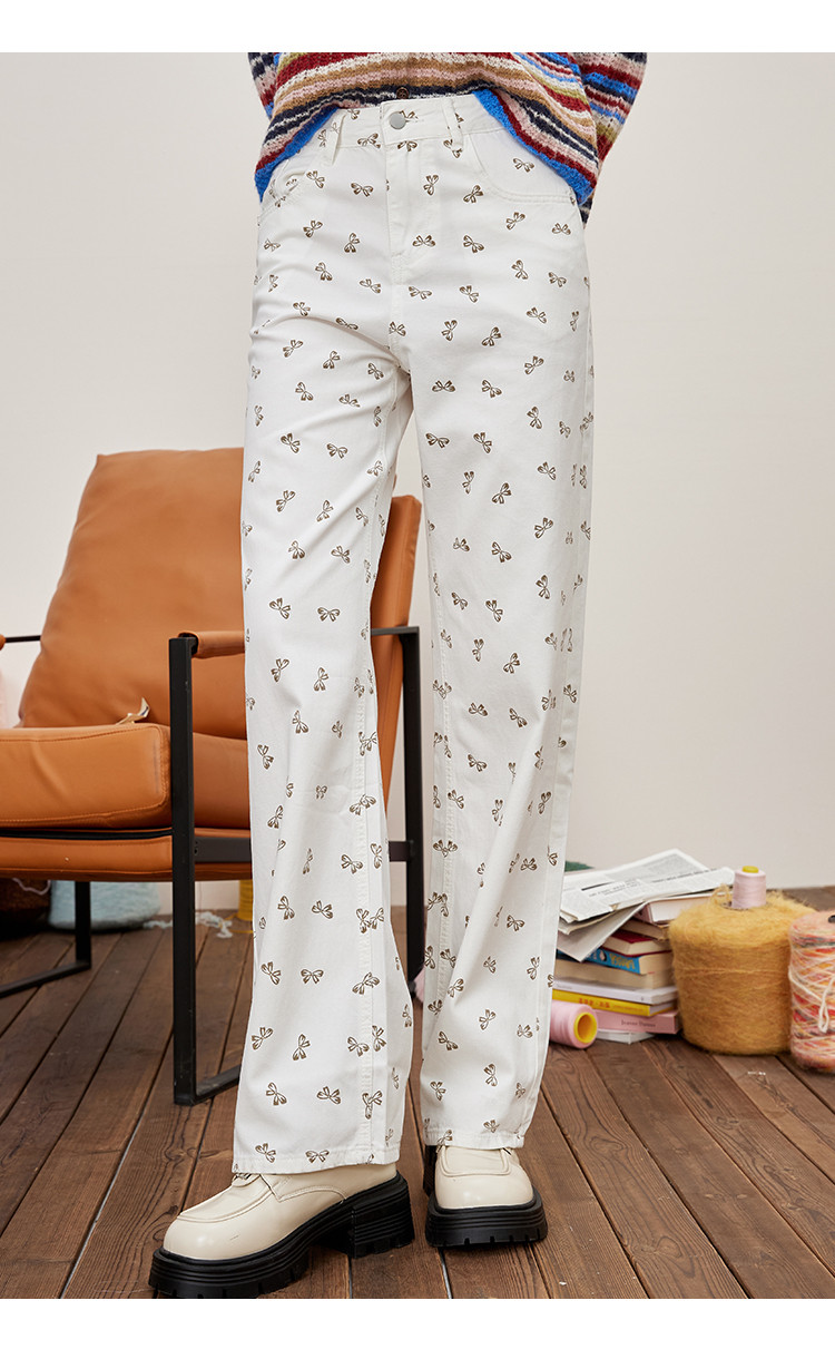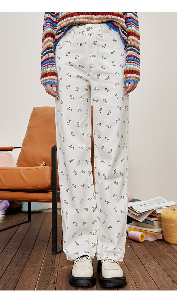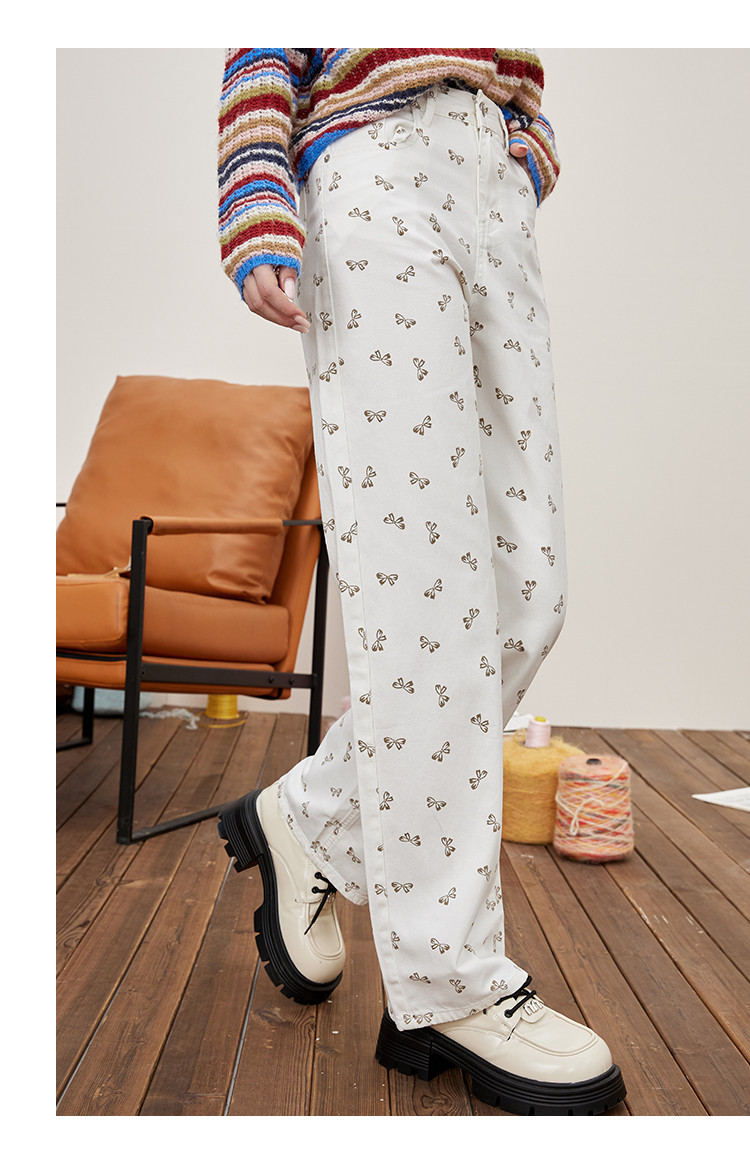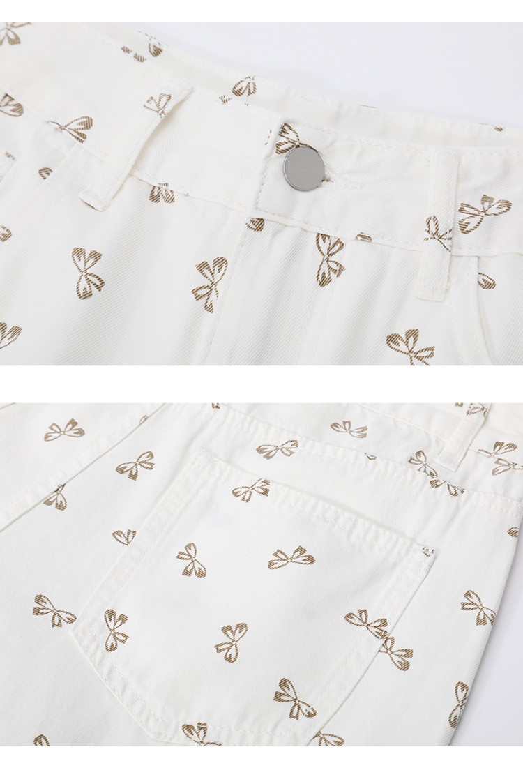 商品名称:韩系可爱蝴蝶结碎花满印直筒裤夏季休闲小清新女式牛仔裤 297053
