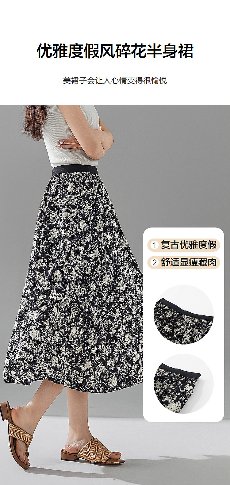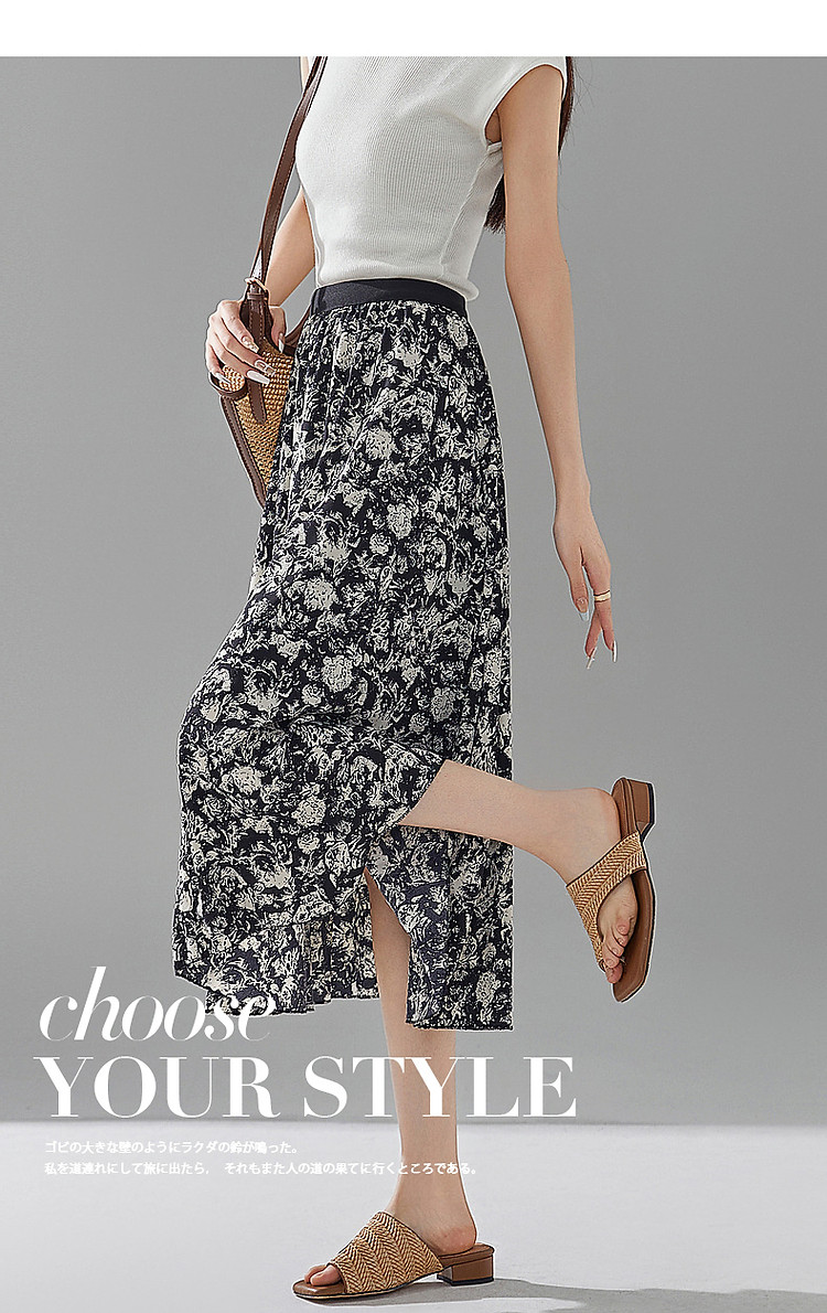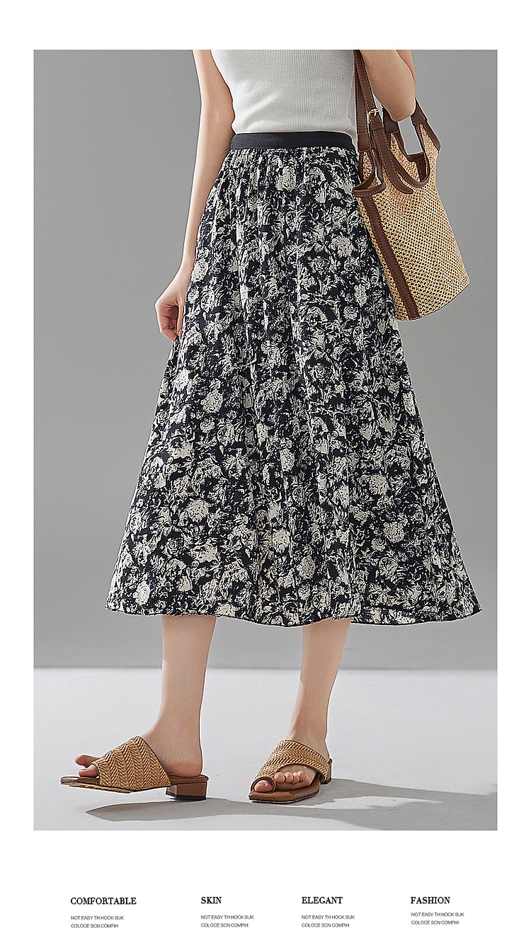 商品名称:【复古优雅度假风碎花】夏显瘦松紧腰舒适藏肉垂感飘逸中长半身裙 562049