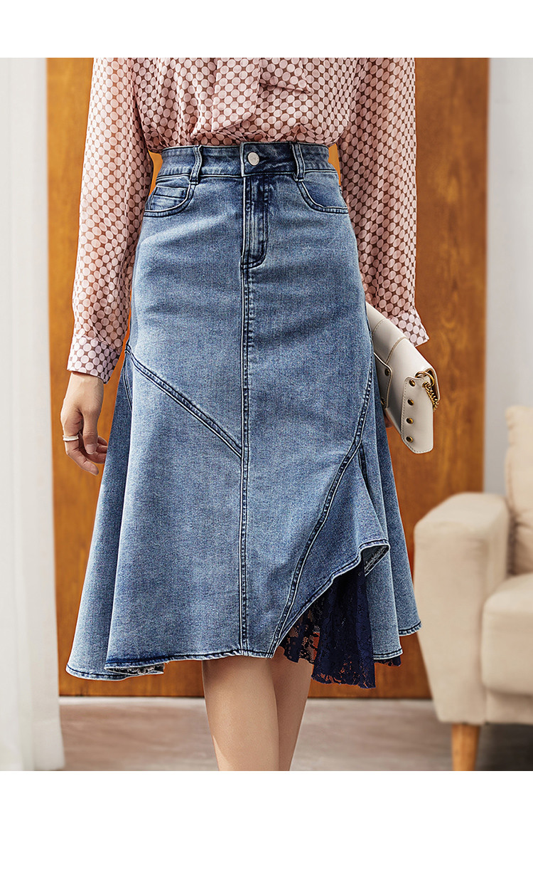 商品名称:【包臀牛仔半身裙】秋季水洗时尚优雅百搭不对称牛仔半裙女 350337