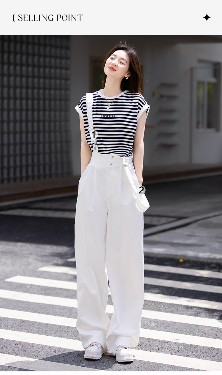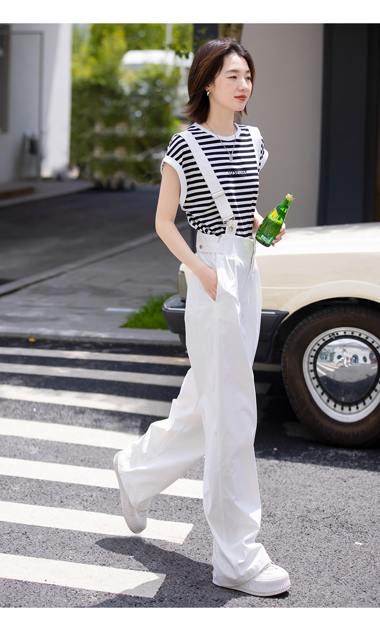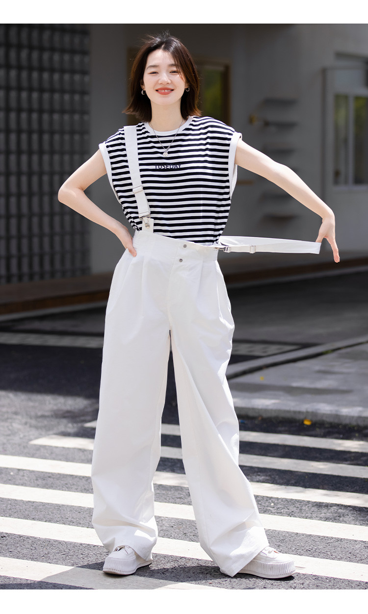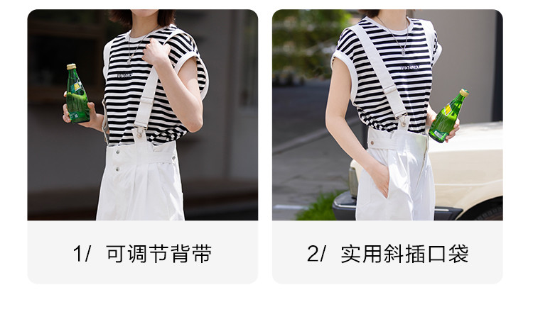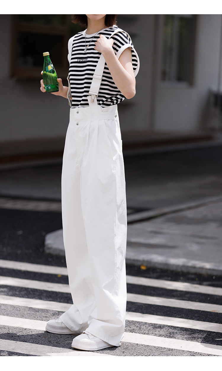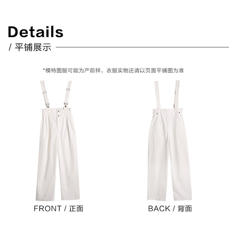 商品名称:【白色阔腿背带裤】春装腰间可调节腰袢阔腿背带裤女 597250