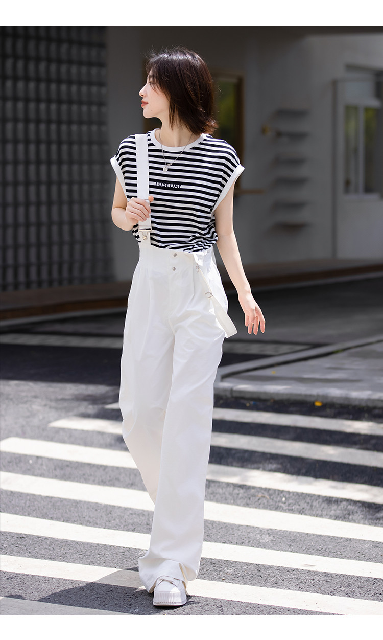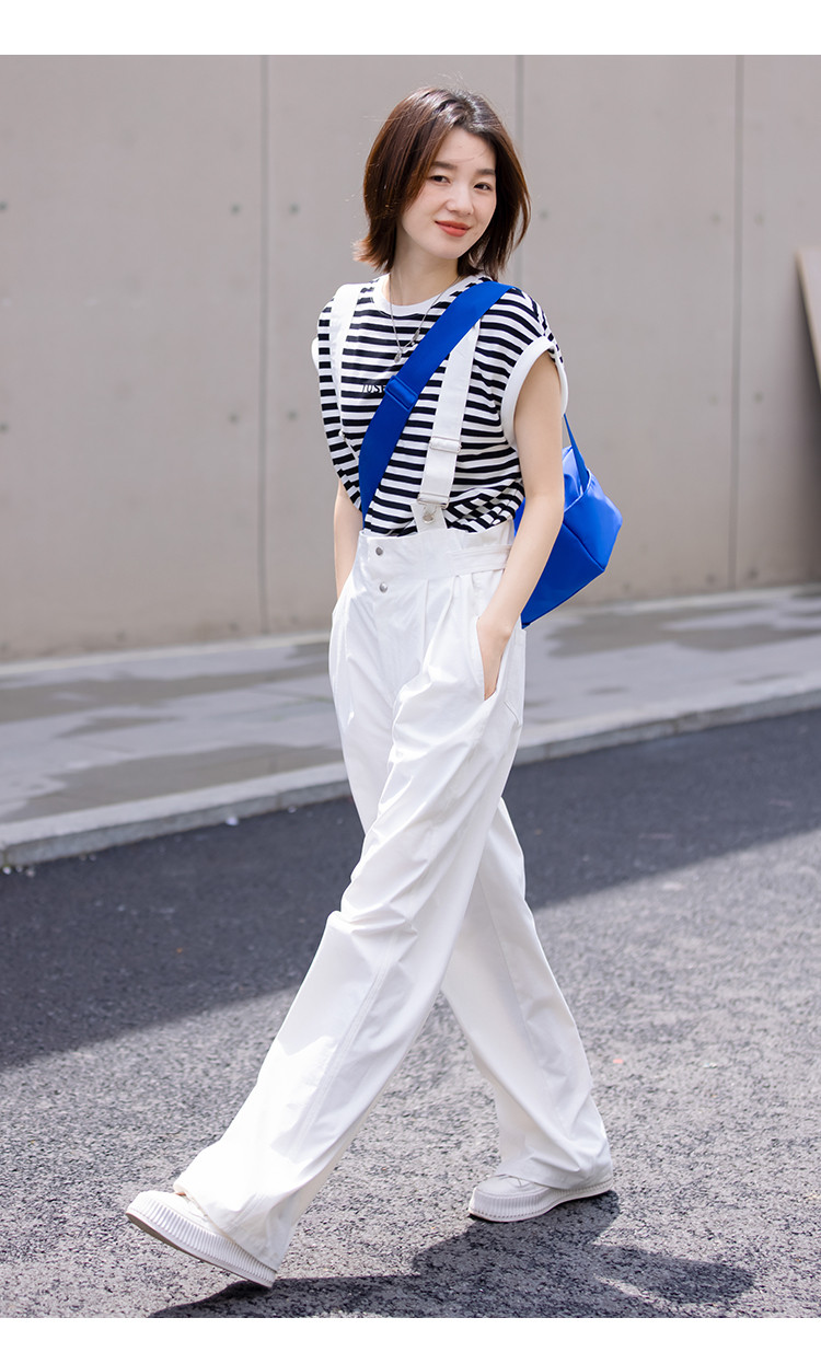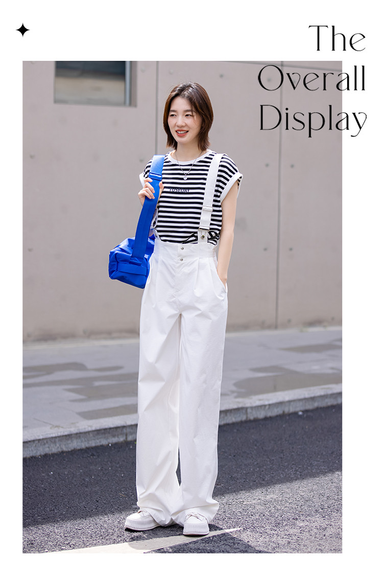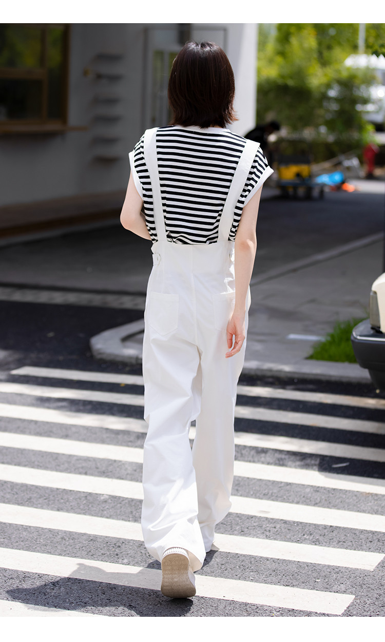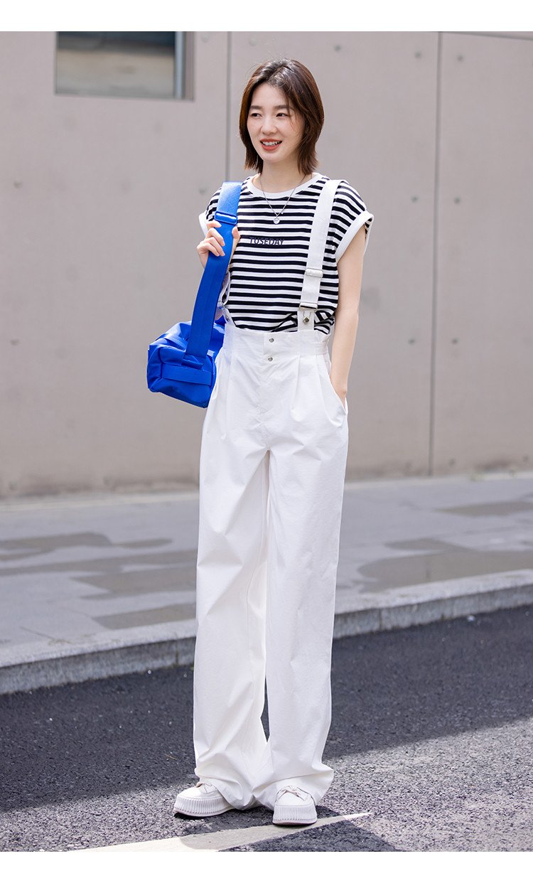 商品名称:【白色阔腿背带裤】春装腰间可调节腰袢阔腿背带裤女 597250